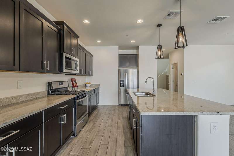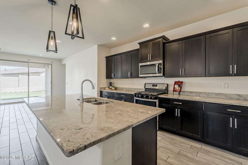 WITH AN ACCEPTABLE OFFER BY NOVEMBER 30TH SELLER IS WILLING TO CONTRIBUTE $10,000 TOWARDS A RATE BUYDOWN OR OTHER CONCESSIONS. This spacious home, built in 2022, features 5 bedrooms and 4 bathrooms, along with a 3-car garage. The open great room floor plan is perfect for entertaining! The gourmet kitchen boasts espresso 36'' cabinets, granite countertops, stainless steel appliances, and pendant lighting over the large kitchen island, as well as a large walk-in pantry. The main living areas have wood-look tile. Conveniently located on the first floor is a bedroom with an ensuite bathroom. On the second floor, you will find a flex room, a laundry room, the primary bedroom, and three additional bedrooms. The backyard offers a large covered patio for outdoor enjoyment.