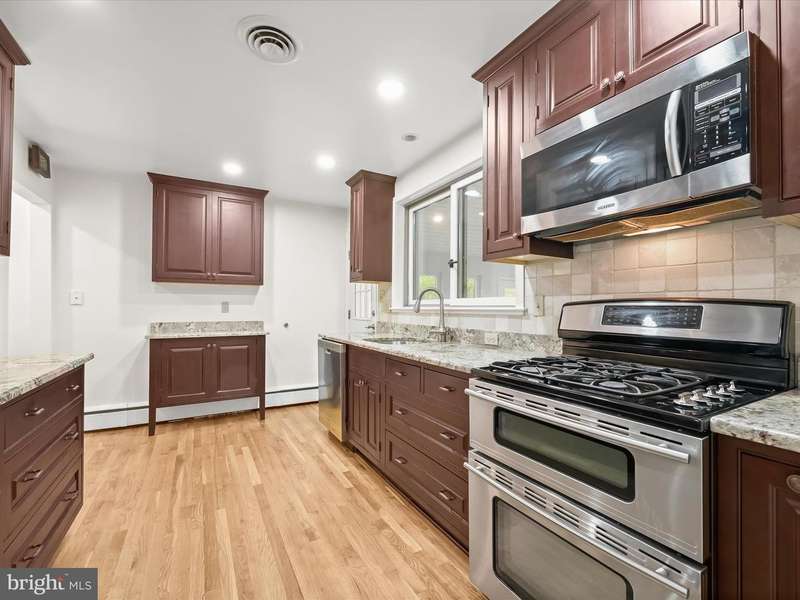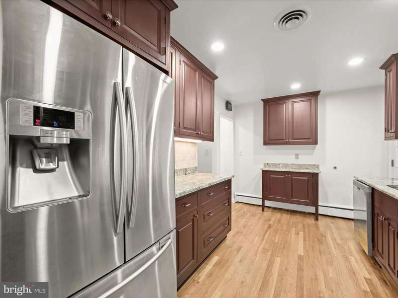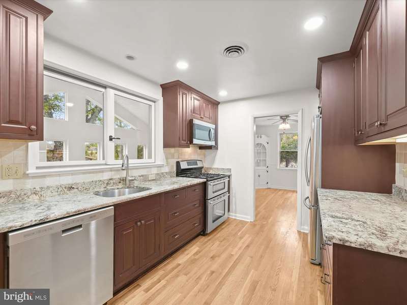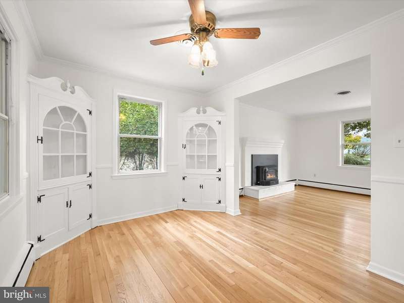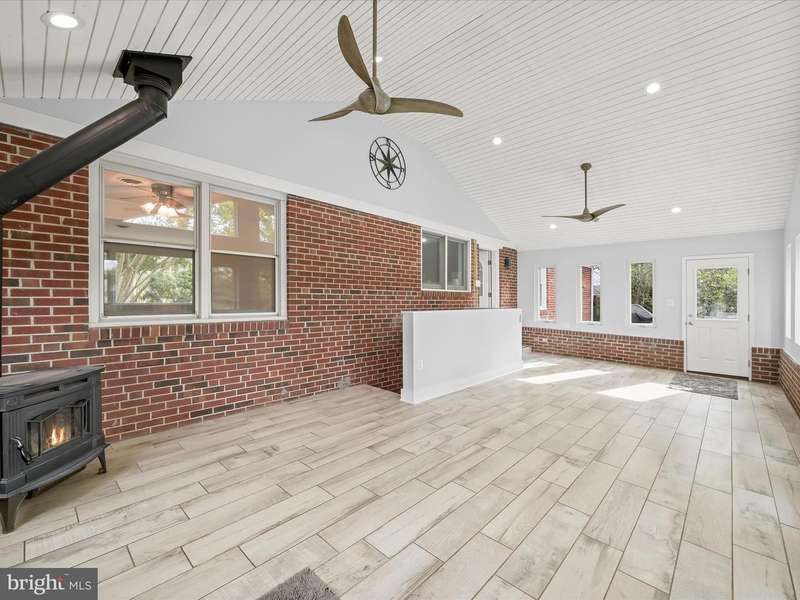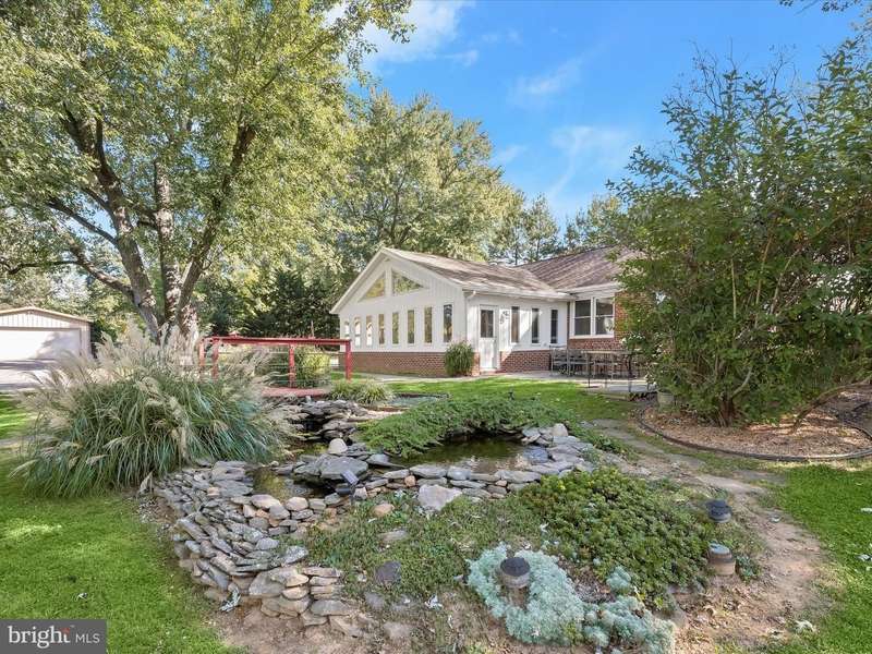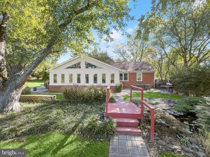 This beautifully renovated brick ranch home in Woodstock blends timeless character with modern comfort and exceptional outdoor spaces. Mature trees, a tranquil pond, and lush landscaping frame the property, which also features a barn with electric, a detached garage, and dual driveways for added convenience. Inside, the home showcases fresh paint, refinished hardwood floors, new carpet, and updated lighting throughout. To the right of the foyer, a spacious living room features a wood stove insert and a stunning picture window that fills the space with natural light. The adjoining dining room includes two built-in corner cabinets and connects to the renovated kitchen, complete with inset cabinetry, granite counters, and stainless steel appliances including a double oven. The expansive three-season sunroom is a true highlight, offering a cathedral ceiling, corner wood-burning stove, and walls of windows overlooking the property. Recently redone with new tile flooring, updated exterior siding, and a peaked roof, it creates a seamless connection between the home and the surrounding landscape. The main level includes three bedrooms, among them a primary suite with an en suite bath featuring a tiled soaking tub and shower surround. Two additional bedrooms share another full bath with a frameless glass shower. Both full baths are enhanced with heated floors for added comfort. The finished lower level extends the living space with a large recreation room featuring a wet bar and full-length bar seating, a bonus room, and a half bath for flexibility. The utility room provides laundry, storage, and a separate entrance from the sunroom. A walk-up attic provides additional storage space, offering even more functionality to the home. Set on 1.39 acres across two parcels, a 1.03-acre main lot and an additional .36-acre parcel referenced on the deed, this property offers room to spread out and enjoy the natural setting. Outdoor living shines with multiple paver patios, a fire pit, a pond accented by a bridge leading to a lower patio, and mature landscaping that provides privacy and tranquility. A flourishing garden and berry patch add to the appeal, creating a space where you can cultivate and enjoy your own fresh harvest right at home. The detached garage accommodates four or more vehicles and is currently being used as an exercise room, while the barn provides additional storage and workspace with electric, lighting, and fans. Ideally situated, this property captures the best of peaceful, semi-rural living with convenient access to nearby outdoor recreation at the Howard County Conservancy and Patapsco Valley State Park. Everyday amenities and commuter routes including I-70, Route 40, and Route 29 are just minutes away, making this Woodstock residence a rare combination of serenity, function, and modern style.