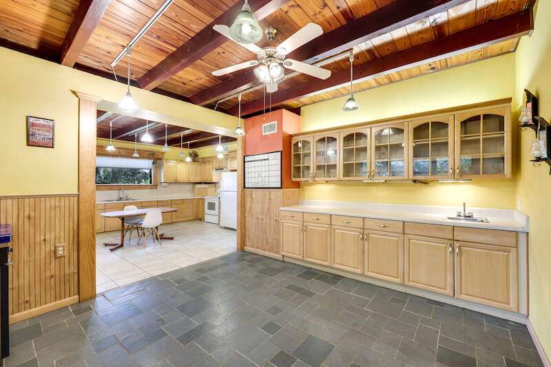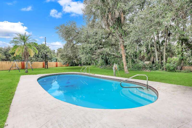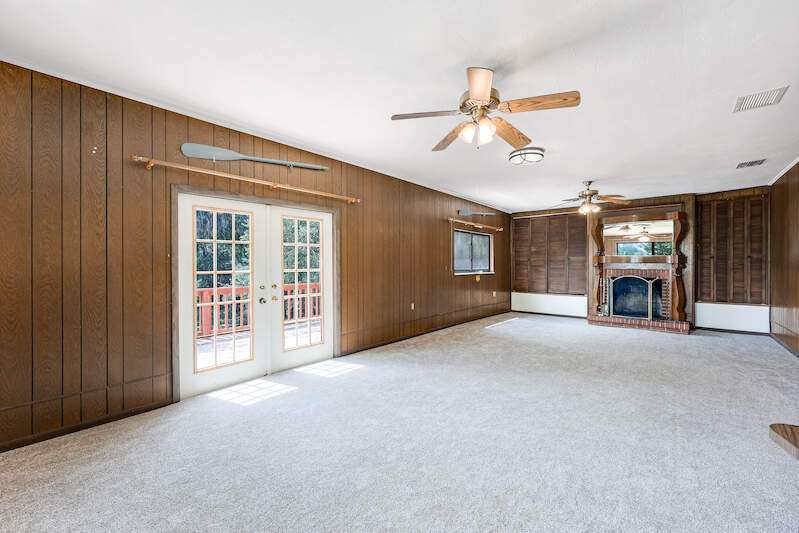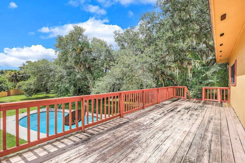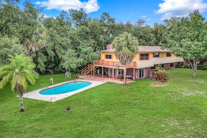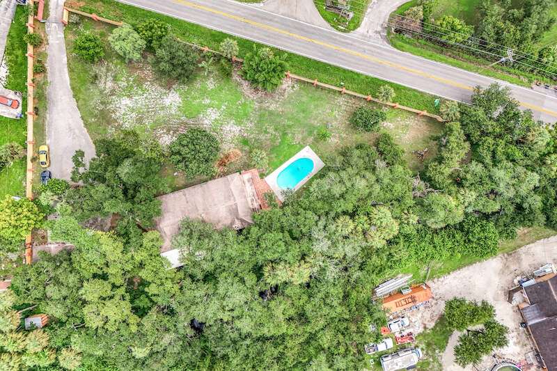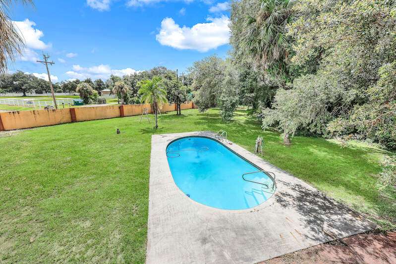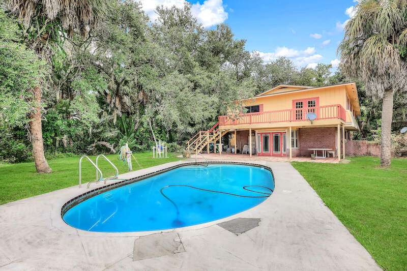 This incredible pool home, nestled on 1.2 acres of lush, tree-lined land with mature oaks and fruit-bearing plants, offers a rare blend of space, privacy, and potential. A charming bridge crosses Daughtrey Creek at the back of the property, adding to the serene, natural setting. With over 5,000 sq ft of living space, the home includes a private in-law suite-complete with its own entrance, bedroom, bathroom, kitchenette, and living area-making it ideal for multigenerational living or guests. The main residence features two oversized living rooms, each with a cozy wood-burning fireplace, a large open kitchen, and two expansive bonus rooms perfect for entertainment, hobbies, or future customization. Step outside to a heated pool and patio area, ideal for hosting gatherings or simply unwinding in your private backyard oasis. Recent updates (2022-2023)Two new A/C units and air handler; multiple updated electrical panels; new well pump, water filtration system, and softener. While the home does need some TLC and cosmetic updates, it comes with a 1-year home warranty for added peace of mind. With ample parking, a block wall along the front and sides for privacy, and a detached garage with two doors and workshop space, this property offers incredible value and versatility. Whether you're looking to create your dream home or invest in a property with massive potential, this one is not to be missed. Bring your vision-schedule your showing today!