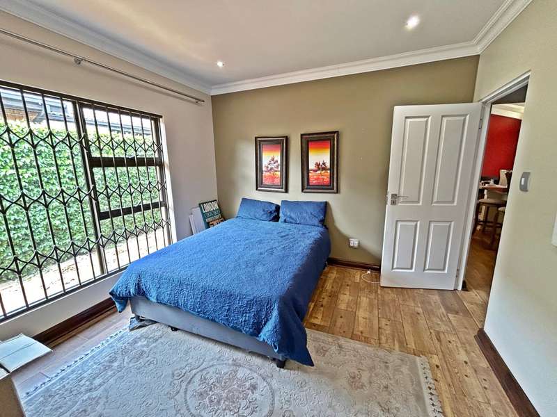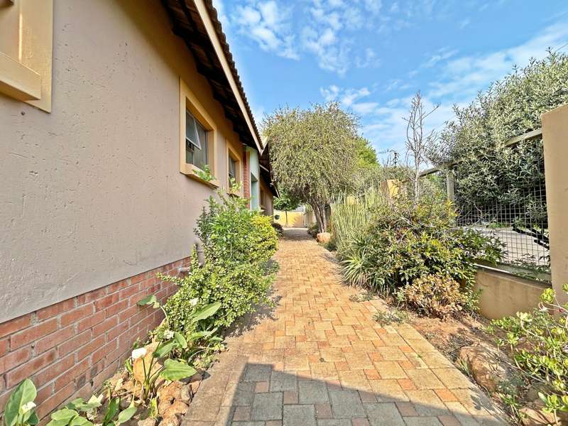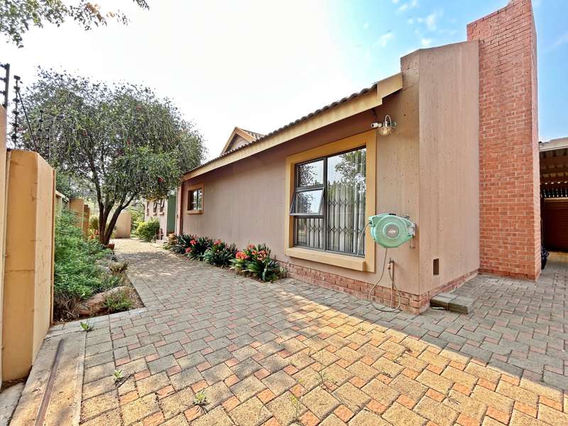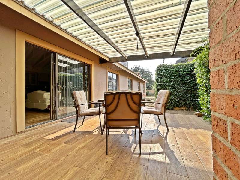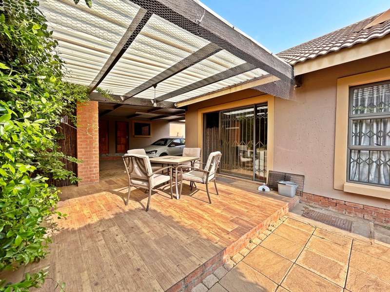 Welcome to this beautifully designed 3-bedroom, 2-bathroom duet home that effortlessly blends modern elegance with timeless classic charm. Perfectly positioned on a corner stand, this home offers both privacy and presence in a sought-after northern neighborhood of Heuwelsig Step inside to an inviting open-plan living space that includes a well-appointed kitchen with a pantry, seamlessly flowing into the dining area and spacious lounge. A built-in braai makes entertaining easy all year round, whether inside or out on the generous under-roof patio overlooking a manicured garden. The main bedroom features a full ensuite bathroom for added luxury, while the remaining two bedrooms are serviced by a second full bathroom—ideal for family or guests. Practical features include: Single lock-up garage and double carport Electric gate and perimeter fencing JoJo tank for backup water supply Alarm system and outdoor security beams for peace of mind This home offers good value, combining stylish finishes, secure living, and thoughtful extras. A rare find—don’t miss your chance to make it yours! Give us a shout, make that appointment and lets put ink to paper!