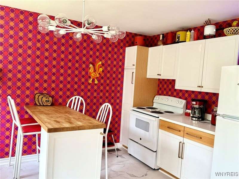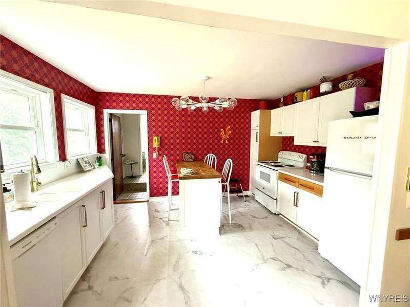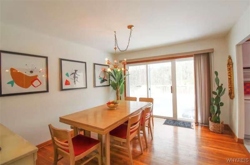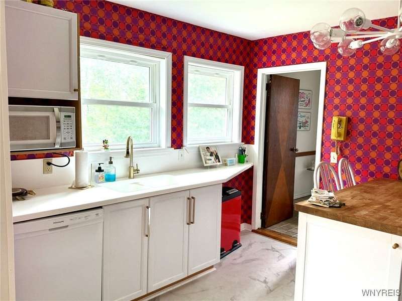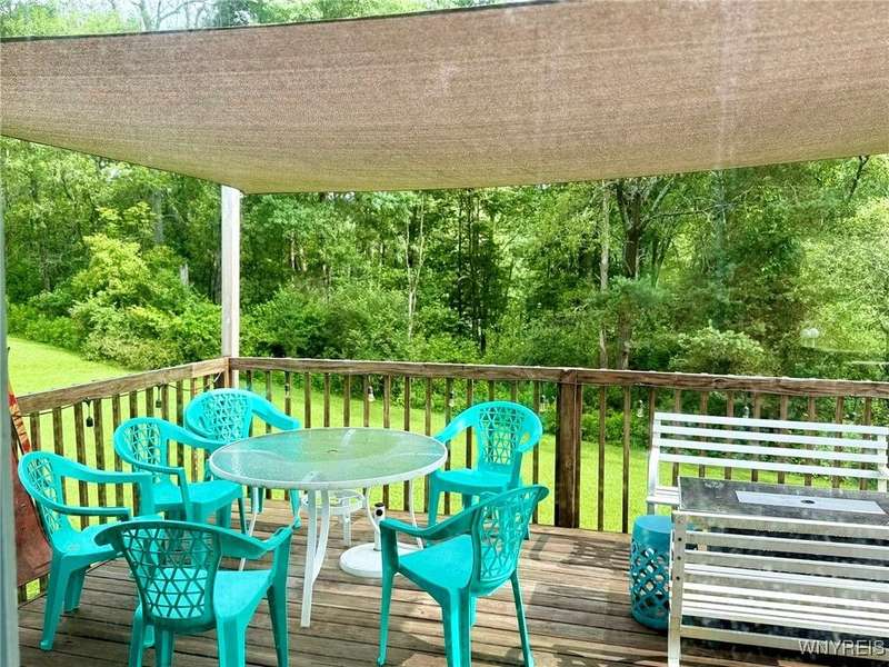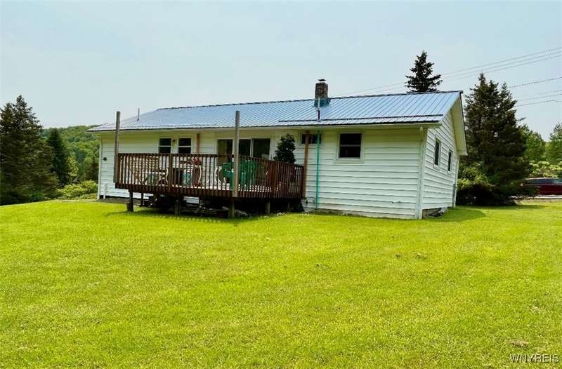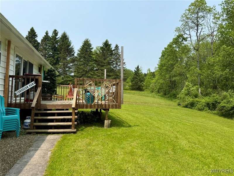 Welcome to your dream retreat with stunning ski slope views of HoliMont Ski Resort out the front window! This 60s inspired raised-ranch home offers four bedrooms and two bathrooms on a large, groomed and treed 2.65 acre lot! Step inside and be transported to the updated, vibrant 60s design throughout the home. The main level has a beautiful living room offering much sunlight from the large picture window and warmth from the gas fireplace for chilly seasons. The updated kitchen includes all appliances. The dining room, three bedrooms and a full bathroom complete this level. The upper level shows off a multi-purpose room for use as the fourth bedroom, an office or a family room. This room shares the level with a full bathroom and an outside, private deck overlooking the green space of the side yard. The basement level features a game area perfect for fun after a day on the slopes or trails. Also in the basement are the washer and dryer which will remain with the house and neatly tucked away in a bright, updated closet area. There are multiple rooms in the basement adding to the living space and storage in the house. The spacious backyard and rear deck off the dining room are ideal for outdoor entertaining and relaxation. The home is being sold partially furnished with an item exclusion list provided by the seller. This home is ready for you to move in and start making memories. Location is just minutes from the charming shops, dining, and entertainment of downtown Ellicottville! You will be close to Holiday Valley Ski Resort, the Seneca Alleghany Resort and Casino and Alleghany State Park. Whether you're looking for a personal retreat, your next real estate investment, or a year-round residence, this property offers it all! It is also conveniently located across from one of New York State's finest mountain bike parks.