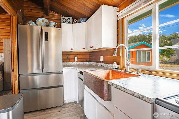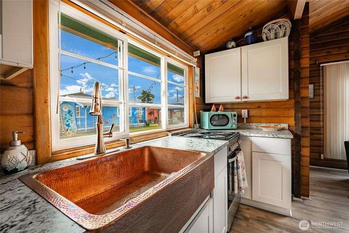 Premier location for the Bay Shore Condominiums development and these 10 stand alone cottages. They are Pan Abode cedar cottage style with vaulted ceilings in the great room. Get your piece of the Birch Bay pie with cottage #6. Remodeled & cute greet you when you arrive. Park right next to your cottage. This cottage has newer flooring, sinks in both the kitchen and bath, appliances, shower, toilet, washer and dryer a well as hot water heater. The cottages have cement foundations with crawl spaces. Centrally located on Birch Bay drive and close to everything including the Birch Bay State Park. Two hours from Seattle and 33 miles from Vancouver BC. Get your Birch Bay property now as the area continues to be attractive to get a way seekers.