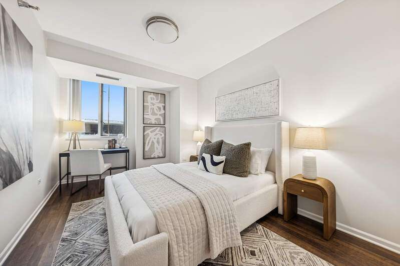Welcome to Prairie House at Central Station at the heart of Chicago's South Loop! This updated 2 bdrm+den, 2 bath condo offers bright east-facing views in a secure, full-service building just steps from the lakefront, Soldier Field and Museum Campus. Inside, you'll find an open layout with hardwood floors throughout, floor-to-ceiling windows, and a private balcony. Chic updated kitchen features stainless steel appliances and granite countertops. The spacious primary suite includes a walk-in closet and ensuite bath with a soaking tub and separate shower. Enjoy high-speed internet included in assessments, in-unit laundry, and deeded garage parking(25K). Building amenities include 24-hour door staff, an on-site manager, an exercise room, and more. Perfectly positioned for city living and commuting alike, this move-in-ready condo delivers style, function, and location in one of the South Loop's most connected communities.