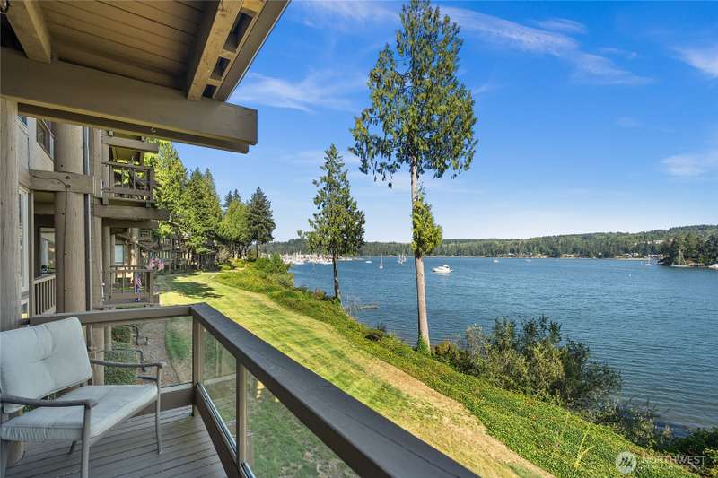 Beautiful view of the Bay from this updated Condo with stairs to the beach just steps from the deck. Enjoy the enclosed sunroom which provides year-round, cozy viewing of the amazing wildlife and harbor. The kitchen has been updated with Corian and tile counters and fresh colors along with special accent lighting. Enjoy the miles of trails, golf, boating and the resort amenities; indoor and outdoor pools, pickle ball and tennis. You will certainly enjoy the privacy of this end unit.