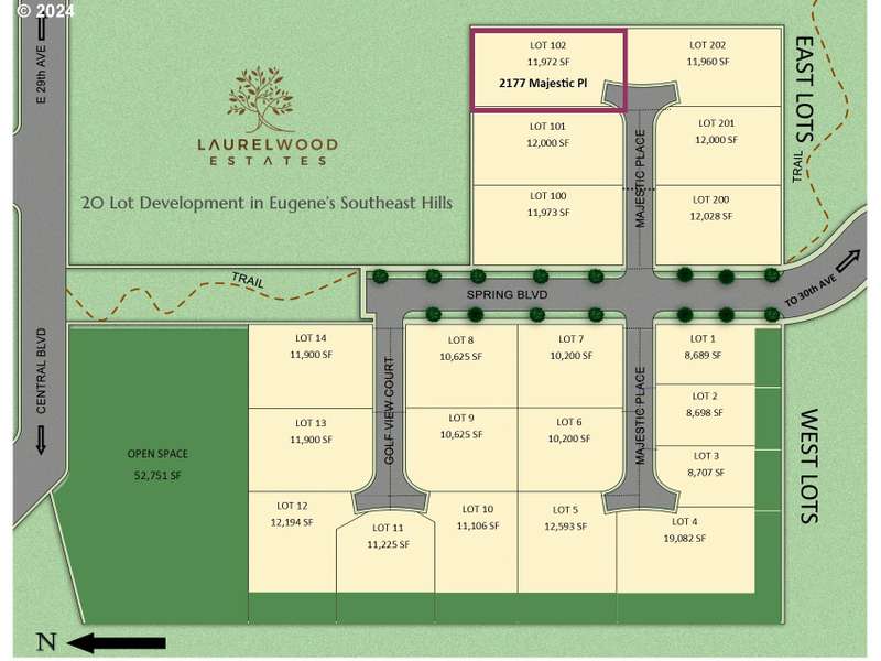 Laurelwood Estate is a private Northwest community with High-end homes. Only a couple lots remaining; Wilson Homes Inc. is the preferred builder and has provided sample plans that could work with the layout of this lot and set-backs. 2177 Majestic sits at the end of the cul-de-sac with South East views of the valley and surrounded by miles of wooded trails. Location allows for a quick access to downtown Eugene, University of Oregon and Lane Community College, Laurelwood Golf Course, Interstate 5 and Riverbend hospital.