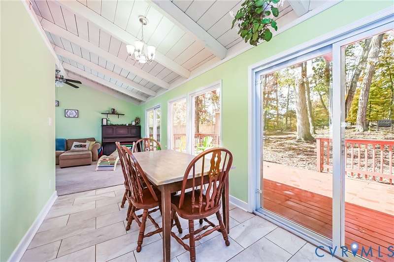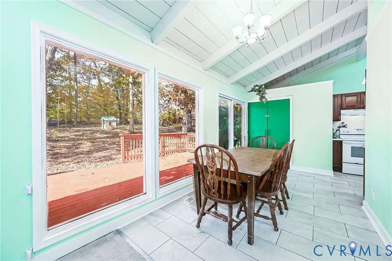 POWHATAN UNDER $300K! Be the 1st to see this GREAT one level living property less than 10 miles to Westchester Commons. Features include 1188 square feet * 3 Bedrooms & 1 Full Bathroom * NEW electrical panel (2025) * NEW Roof (2024) * Kitchen with tiled flooring, vaulted ceiling & appliances * Dining Area with tiled flooring, vaulted ceiling & sliding doors to rear deck * GREAT ROOM with carpet, vaulted beamed ceiling, ceiling fan, closet & sliding door to rear deck * 3 Bedrooms with carpet & beamed ceilings * Full Bathroom with tiled flooring & tub/shower * REAR DECK (30'x10') * Rear storage shed * FRESH GRAVEL on driveway * Wood siding & VINYL WINDOWS * LAKE SHAWNEE community with 3 lakes, beach areas and playgrounds (optional membership) * Quick closing is possible *