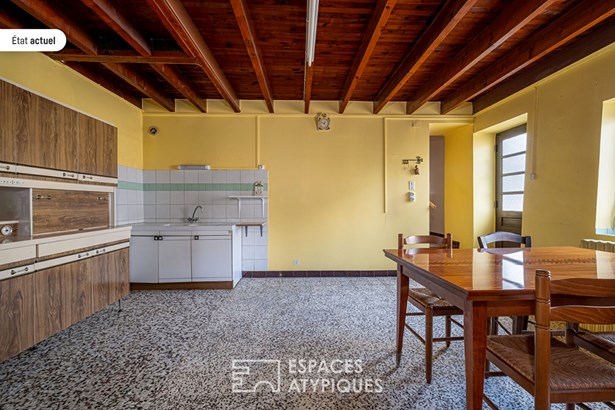 This house, dating from the beginning of the last century, is composed, on the ground floor, of an entrance opening directly onto the kitchen, with on one side a flight of steps leading to the spacious dining room and on the other, a bedroom with its own shower room and toilet with independent access to the outside. A mezzanine allows the accommodation of an additional bedroom. A bathroom and a toilet complete this level.