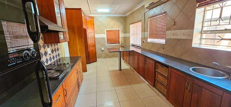 Charming and Spacious Family Home in Prime Location Welcome to your new sanctuary! This beautifully appointed family residence offers generous living spaces and a perfect blend of comfort and functionality, ideal for creating lasting memories. Each bedroom is designed with comfort in mind, featuring ample cupboard space to keep your personal belongings neatly organized. Enjoy the convenience of two well-appointed bathrooms, including a luxurious ensuite for your privacy and relaxation. The heart of the home, this thoughtfully laid-out kitchen is perfect for culinary enthusiasts, providing ample space for meal preparation and family gatherings. Benefit from a double garage and plenty of additional parking for guests or family vehicles. The inviting lapa, complete with a built-in braai, is perfect for entertaining friends and family or simply enjoying a relaxing evening outdoors. The expansive garden offers endless possibilities for outdoor activities, gardening, or simply unwinding in your private green space. Bring your furry family members! This home happily accommodates pets, allowing them to enjoy the spacious garden just as much as you do. Your peace of mind is a priority with an alarm system, CCTV, electric fencing, and a secure gate for your safety. The home offers pre-paid electricity, ensuring you stay in control of your energy expenditure. Water, waste, and sanitation costs are the responsibility of the tenant. If you are seeking a spacious, centrally located home that perfectly balances comfort and convenience, look no further! Contact us today to schedule your private viewing and take the first step toward making this dream home yours.