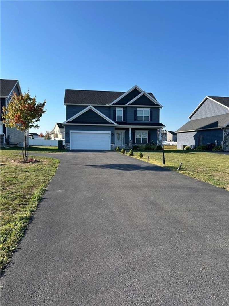 Beautiful 3 bedroom, 2.5 bath Colonial. Huge great room, 24x14, large covered front porch, kitchen has granite countertops, pastel cupboards, all appliances, gas stove, large pantry. Laundry on second level wit front loading washer & dryer. Primary bedroom is 16 x14 with huge walk-in closet & full bath. Front bedroom is 14x13 with walk-in closet, first floor rear bedroom is 14x13 with double closet. 9ft ceilings, basement is full with egress window, High Effic furnace with central air. Churchville Chili schools.