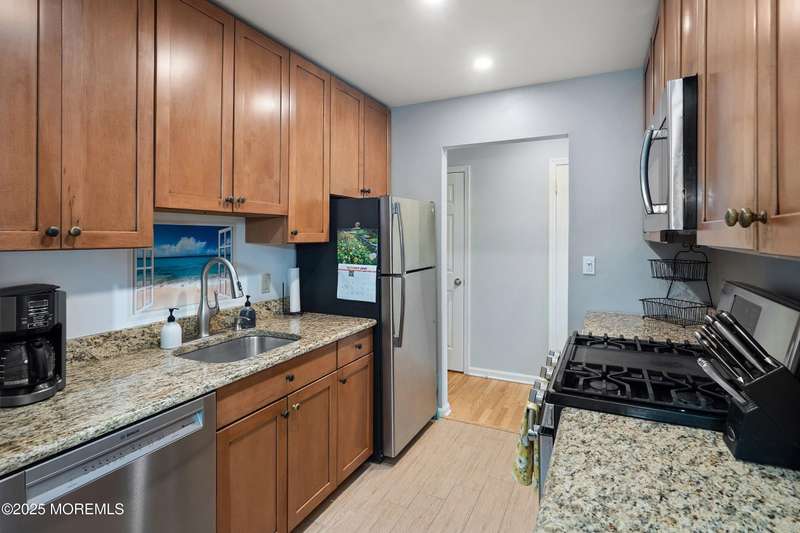 Great opportunity to live in desirable Tanglewood complex east of the canal. Mint 2 bdrm, 1.5 bath unit with tile and hardwood floors throughout. Newer furnace and electric panel. Bright unit has been meticulously cared for and updated. Kitchen with granite counters, tile floors and stainless appliances. Full bath with custom tile and walk in shower. Custom closet systems. Full size washer/ dryer. Detached one car garage. Back patio for outdoor living. Close to beaches and boardwalk..