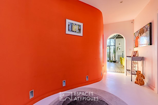 From the entrance, the curved lines and sparkling colors of the entrance hall reveal a warm and refined atmosphere. From there, the perspective already reveals the light and the panorama that seems to take shape in the distance.