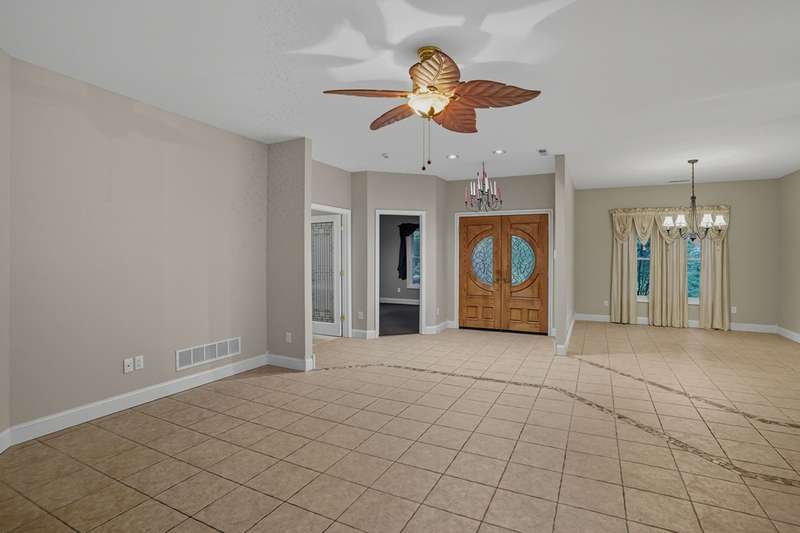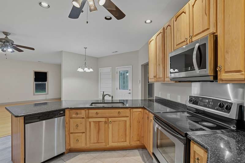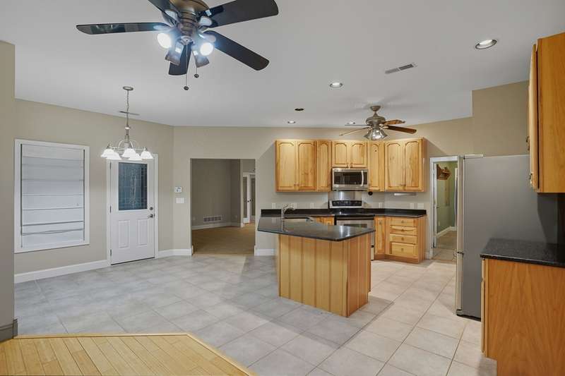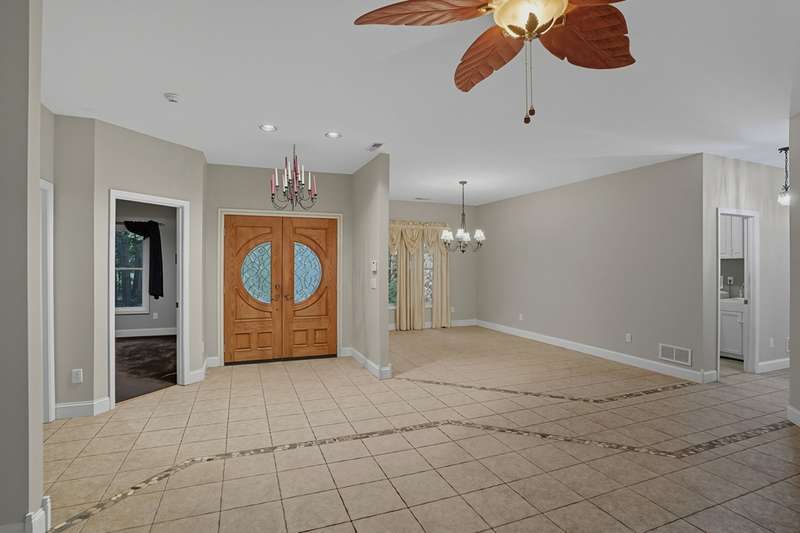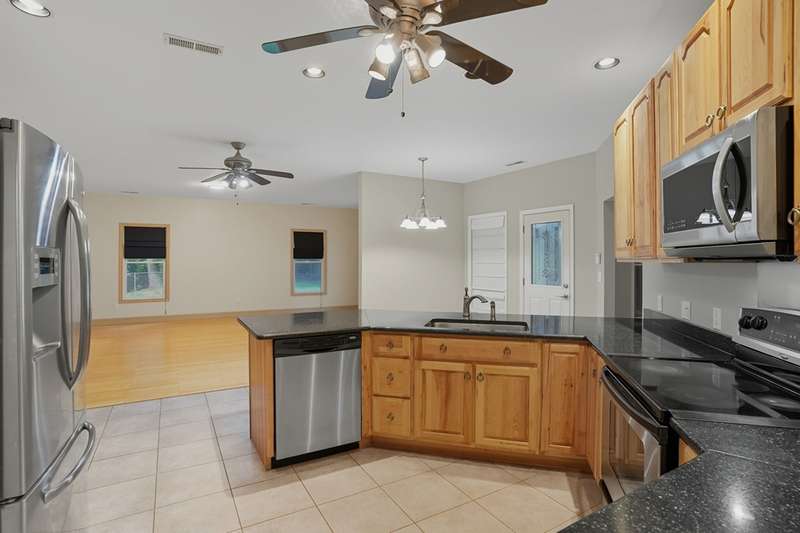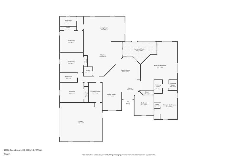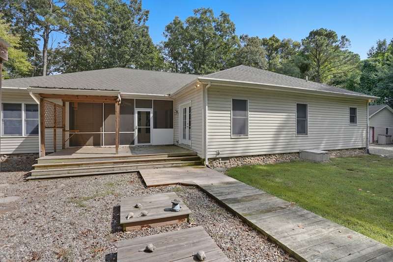 PRICE IMPROVEMENT! Welcome to this beautiful 4 bedroom, 3 bathroom custom ranch home, offering over 3,000 square feet of thoughtfully designed living space. Located East of Route 1 in the Cape Henlopen School District, this home is set on 2.5 acres of peaceful, wooded land with NO HOA, providing the perfect blend of privacy and convenience. Featuring 2x6 construction, this home boasts high-quality finishes and recent upgrades, including a new water heater and HVAC system (1 of 2). The main entertaining area is highlighted by solid pine doors, bamboo hardwood floors, and tile throughout. The upgraded kitchen is a chef’s dream with stainless steel appliances, quartz countertops, 42” hickory cabinets, and a spacious walk-in pantry. Entertain in the formal dining area, perfect for hosting family and friends. The spacious primary suite is a true retreat, featuring dual walk-in closets and a luxurious ensuite bathroom with a double vanity and walk-in shower. Generous laundry room with a utility sink and cabinetry. The bonus 5th bedroom/office offers flexibility for your needs. Step outside to relax or entertain on the screened-in rear porch, leading to a wooden deck overlooking the fenced backyard, providing plenty of space for outdoor activities. Storage is abundant with an attached 2-car garage, plus a detached 24x48' garage, carport with an enclosed shed, and additional attic space. Don’t miss out on this incredible property that combines space, quality, and privacy in a sought-after location.