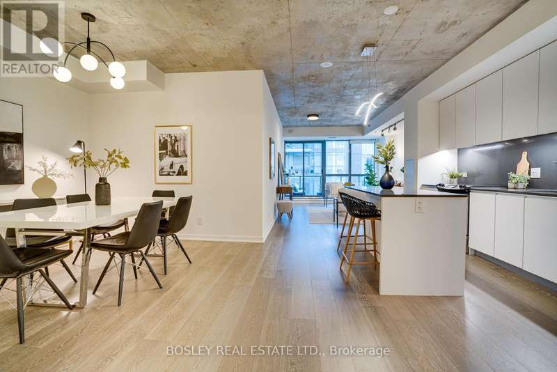 Looking for a condo that gives you space to spread your wings? Say hello to the unicorn that is suite 403 @ 8G. Tucked into a community-driven, loft-style boutique building in the heart of West Queen West, this oversized 2+1 bedroom condo is waiting for you. This suite spans over 1000 sq ft and feels more like a home than a cookie-cutter unit. Enter into a true foyer with front closet, and a spacious open-concept kitchen that flows into the light and bright living space... there's room to breathe here. Did we say den? Lets call it your zen den - make it your dining room, make it your home office or separate it and make it whatever you need! The choice is yours. Both bedrooms have walk-in closets, there are 2 full bathrooms and let's not forget that the balcony allows for gas BBQs. And thanks to upgraded soundproofing on the party wall, it's extra quiet inside. Live steps from West Queen West's best - where creativity, culture and convenience collide. Nearby Trinity Bellwoods Park, the Ossington Strip, Gladstone House, Drake Hotel, and the pizza at Badiali (you're welcome). The neighbourhoods (and neighbouring neighbourhoods) are non-stop-top amenities, cafes and restaurants to choose from. Our favourites - Bar Poet, Pizzeria Badiali & Bernhardt's. Trust us, you'll have your favourites, too. Need groceries? Metro is in your building complex and FreshCo is across the street. Need to get downtown fast? The Queen streetcar is ready when you are. Neighbourhood. Community. Square footage like this... Almost impossible to find. *EXTRAS* Original owners, the first time this beauty has been on the market! Low maintenance, tons of storage. Low per square foot price! (id:7434)