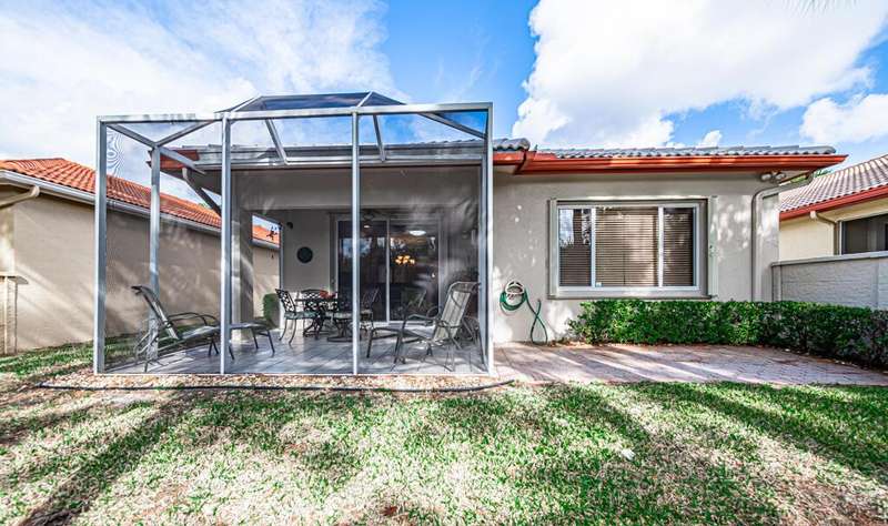 ABSOLUTELY METICULOUS RIVIERA MODEL WITH A FABULOUS SERINE SETTING SURROUNDING THE EXTENDED SCREENED PATIO. THE REMODELED KITCHEN HAS GRANITE COUNTERTOPS, & STAINLESS STEEL APPLICANCES. THIS MODEL OFFERS AN EXTRA LARGE MASTER BEDROOM AND TWO LARGE CLOSETS.. THE OFFICE/3RD BEDROOM HAS BEAUTIFUL LAMINATE FLOORING AND AND THE REMODELED GUEST BATH IS WELL LOCATED TO OFFER TOTAL PRIVACY TO GUESTS, AND VISITORS. .THE HOME IS PROFESSIONALLY DECORATED AND MOVE IN READY. THE BRAND NEW CLUBHOUSE IS NOT TO BE BELIEVED. ALONG WITH A FULL SERVICE BAR & CAFE, AND TWO POOLS - ONE A RESISTANCE POOL - THE MODERN FITNESS CENTER BLOWS AWAY THE OTHER COMMUNITIES; AND THE SOCIAL HALL FEATURES A BRAND NEW STAGE W/PROFESSIONAL SOUND AND DRESSING ROOMS. THIS IS COUNTRY CLUB LIVING WITHOUT THE MEMBERSHIP DUES!