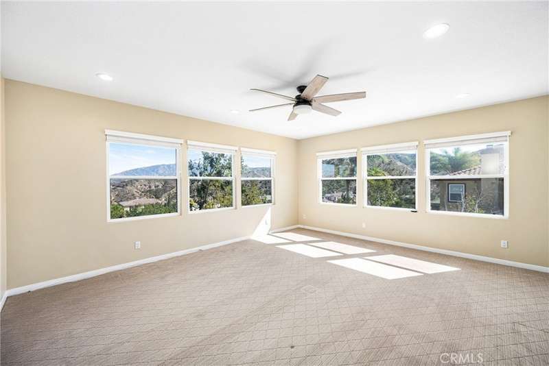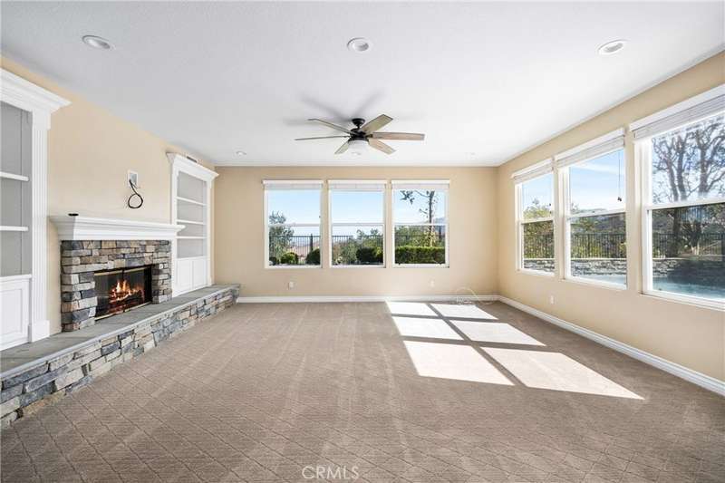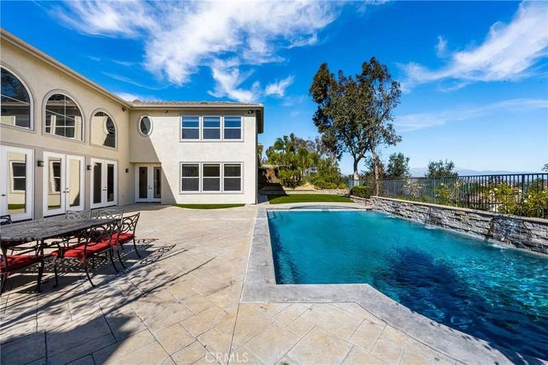 Luxury estate property for lease in the highly coveted guard-gated community of Summit Pointe Estates. This Standard Pacific largest plan 4 is one of the most highly desired floorplans within the community. A beautifully remodeled kitchen with quartz counters, stainless steel appliances and new cabinetry is open to the spacious family room with views of the canyons, mountains and hills with twinkling lights. Soaring ceilings throughout the main level and walls of windows seamlessly bring in the natural light and blend the outdoor entertainment areas. The main floor bedroom with private bathroom is always a highly desired feature. The main floor is complete with newer flooring and neutral carpeting. The primary suite offers dual walk-in closets, dual vanities and a large soaking tub as well as serene views of the surrounding hills. Three additional bedrooms with one a jack and jill bedroom, and an open office or media room as well as a loft area complete the second level. The pool and spa have been newly upgraded with pebble tech surfaces. All new exterior painting and newly installed artificial turf make this a perfect home for resort living. Encompassing Stunning Views of the surrounding hills and mountains from nearly every room and offering both a ample patio entertaining area plus a large grass areas that can be gated from the pool, this home offers executive living and a peaceful environment.