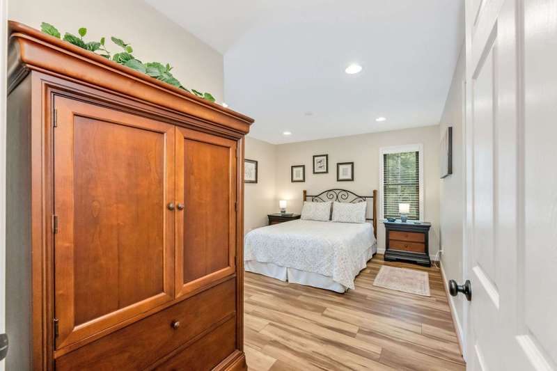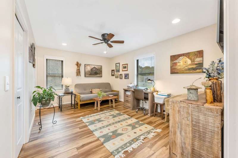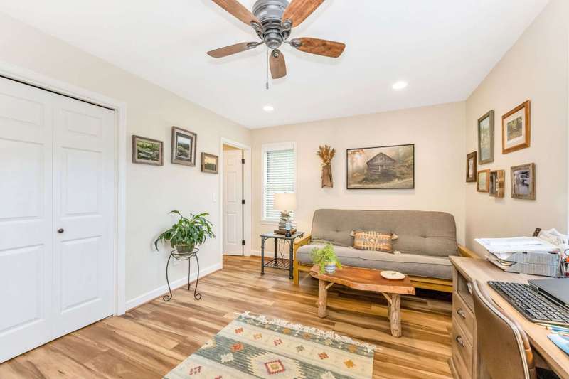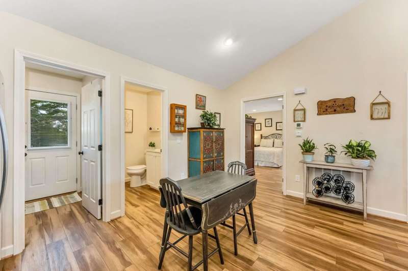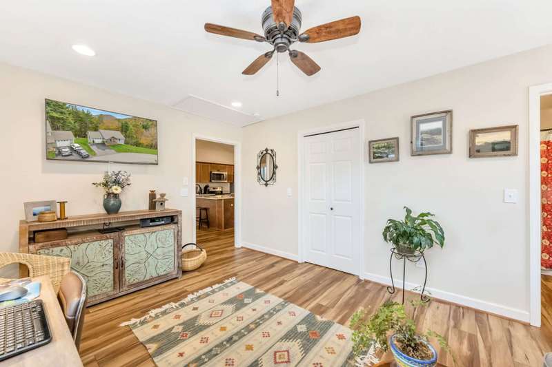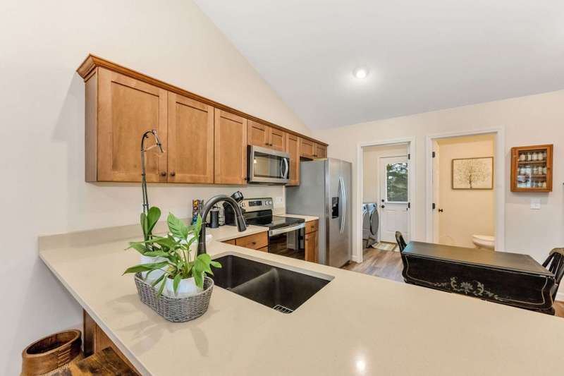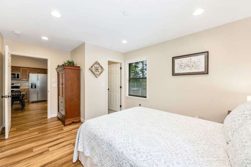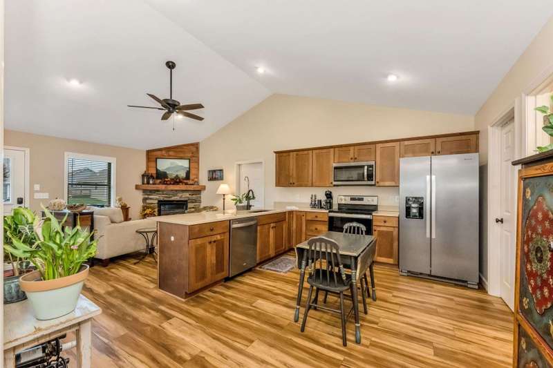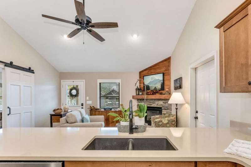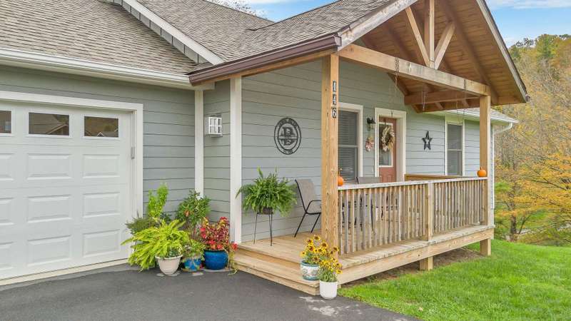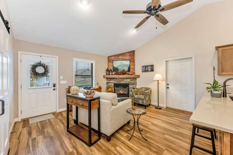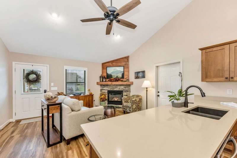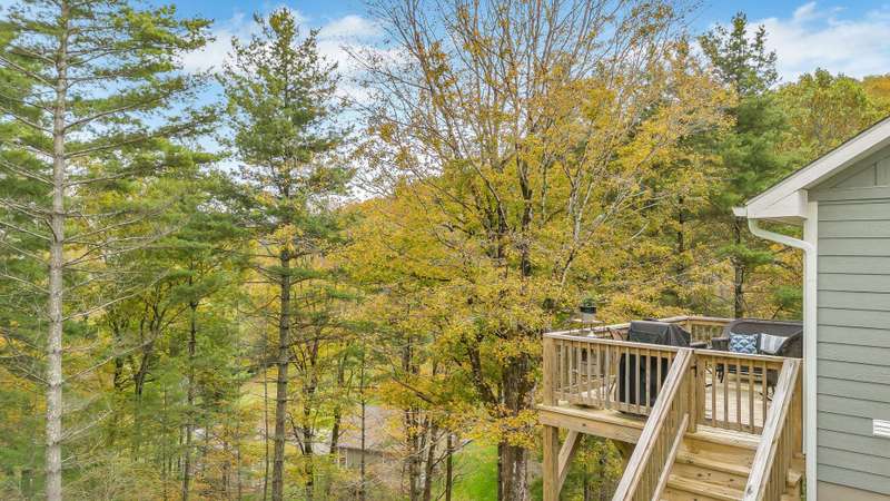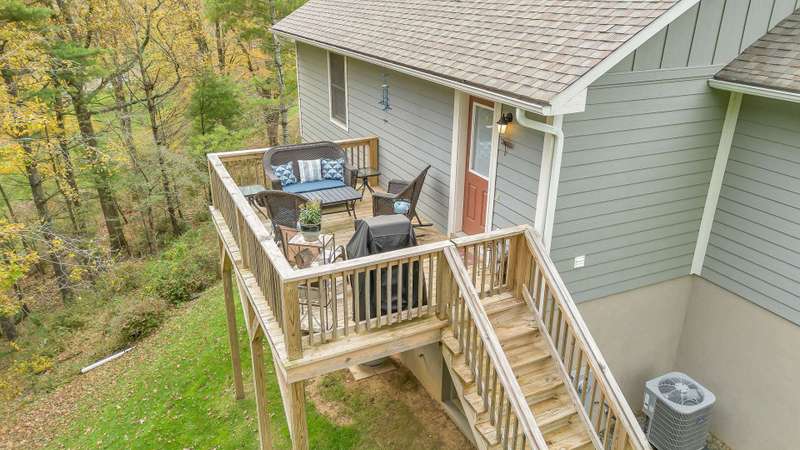 Modern Blue Ridge Mountain Townhome with privacy and style just minutes from downtown Boone and ASU. This beautifully appointed 2-bedroom, 2.5-bath craftsman-style townhome offers the perfect blend of convenience, privacy, and upscale comfort. Step inside to an open-concept living, dining, and kitchen area with vaulted ceilings and Luxury Vinyl Plank flooring throughout. The kitchen features sleek quartz countertops and bar-side seating, which provides the perfect space for entertaining or everyday living. Each spacious bedroom includes a walk-in closet and a private ensuite bathroom, with one featuring a custom glass-enclosed tile shower complete with a built-in storage niche and safety grab bars. Enjoy peaceful mornings and quiet evenings on your back porch, which overlooks 3.2 acres of wooded development common space, providing a level of privacy rarely found in townhome living. Additional green space to the right of the home enhances that secluded feel. A rare bonus is the extended-height, encapsulated crawl space offering ample dry storage for your seasonal decorations, kayaks, camping gear, or outdoor furniture during the winter months. Whether you're seeking a full-time residence, a seasonal retreat, or an investment opportunity close to Appalachian State University and the heart of Boone in Watauga County, NC, this home checks every box. Make plans today to schedule your private viewing of our listing B115.