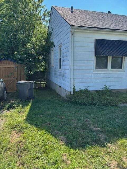 Sold AS IS. Living Room, Kitchen, 2 bedrooms, One bath on great lot. New roof is less than a year old, and floor updated in kitchen and bedroom. Hardwood floors in living room and under bedroom flooring. It has a detached garage, and partially Fenced Yard.