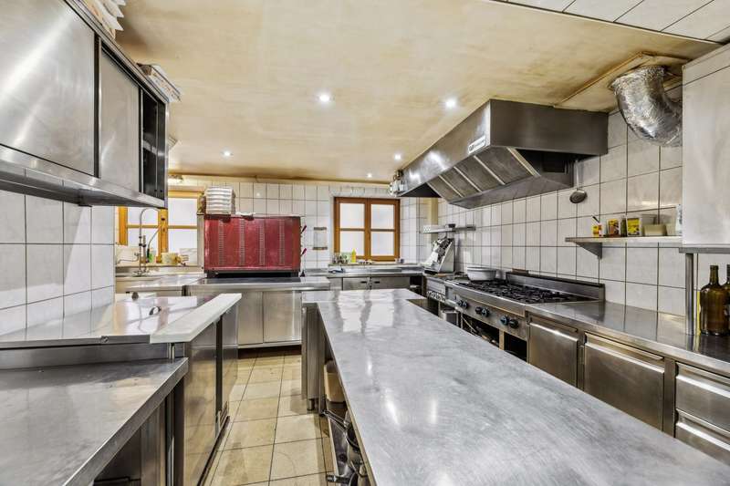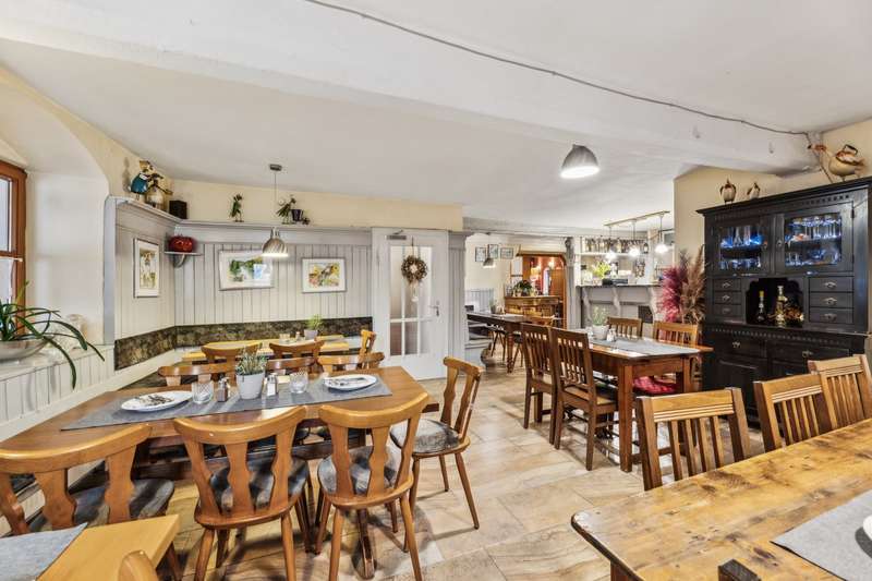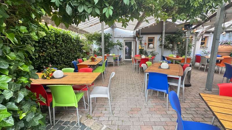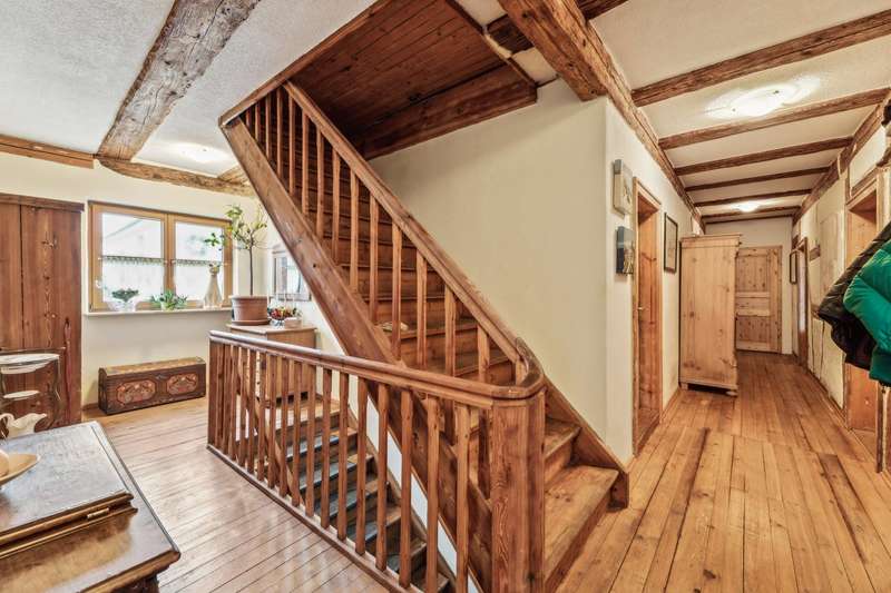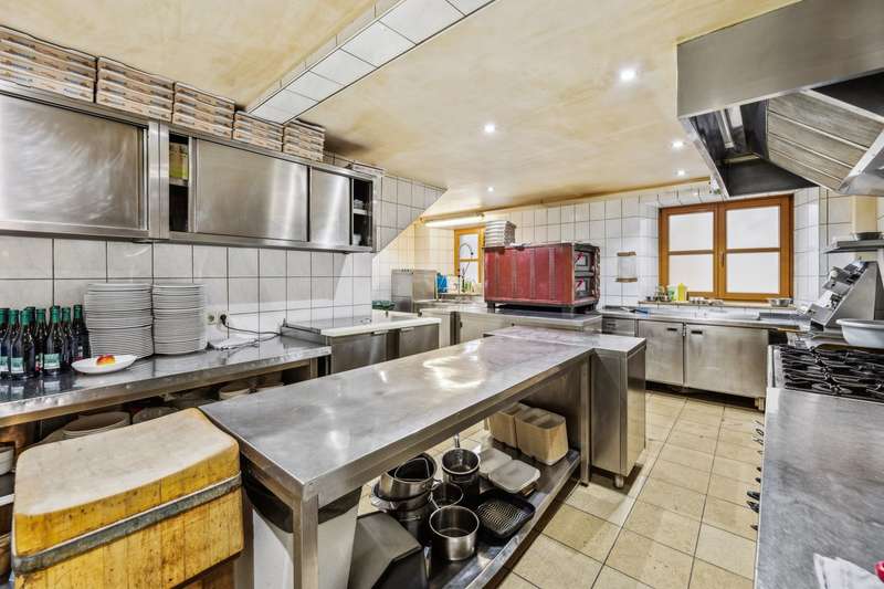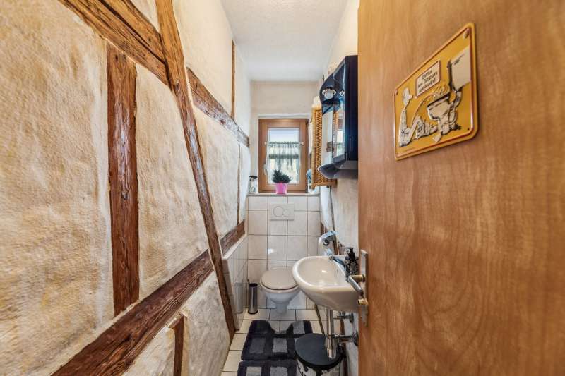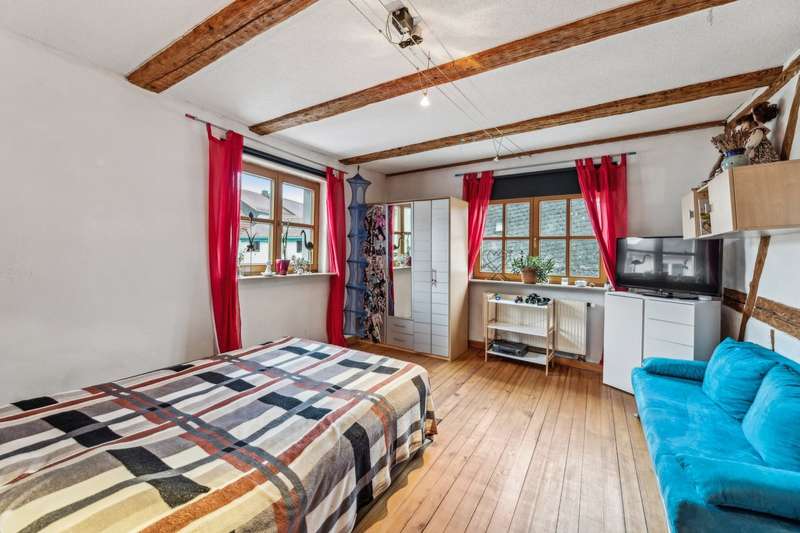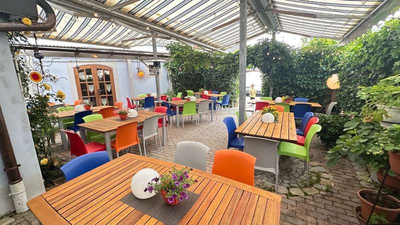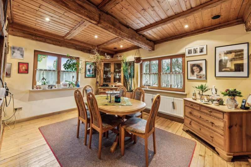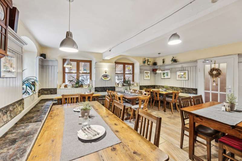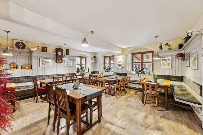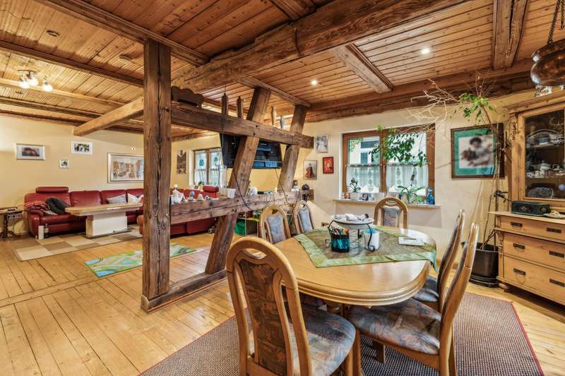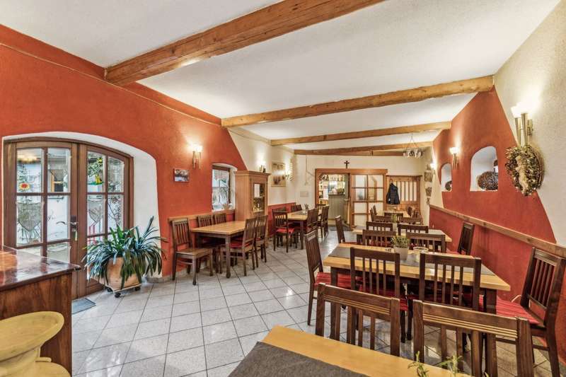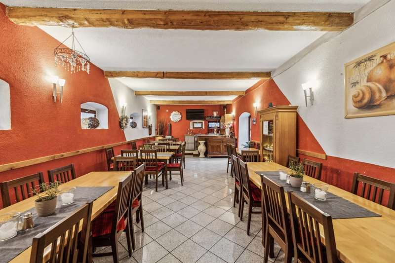 The residential and commercial building, which was built in 1847 and partially renovated in 2003, is located in the town of Hollfeld in the district of Bayreuth. The property is divided into a commercial area of approx. 200 m² on the first floor and a residential area of approx. 160 m² on the upper floor. On the first floor there is a restaurant with a spacious dining room with two adjoining rooms, a catering kitchen, several storage rooms and separate guest WCs for men and women. Access to the private terrace is possible from the adjoining room as well as from the storage room. The staircase leads to the upper floor, which has a living/dining room, a kitchen with built-in appliances, a bedroom, a study, an office, two children's rooms, a bathroom with shower and a guest WC. There is a large attic for a variety of uses. In the basement there is a boiler room, a tank room, a storage room and two further cellar rooms. The building with its own courtyard/garden and terrace is located on a plot of approx. 500 m². The living and usable space amounts to approx. 440 m². The house has oil central heating. For further details, please contact Mr. Erwin Eberhardt, independent real estate agent at VON POLL IMMOBILIEN Bayreuth, by telephone on 0921 73 01 848 or by e-mail at erwin.eberhardt@von-poll.com.