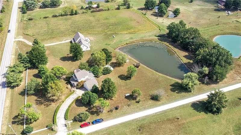 Charming Dual-Home Property on 7.5 Acres A Rare Blend of Comfort, Character & Possibility. This beautiful 7.5-acre property offers not just one, but two unique homes, making it perfect for multi-generational living, rental income, or a home-based business.The main home is a 1.5-story custom-built charmer, designed with a whimsical, dollhouse feel. Featuring all-wood floors, custom cabinetry, and a beautiful wooden staircase, it exudes warmth and craftsmanship. Upstairs the hardwoods continue, two bedrooms both have two closets and share a bathroom with a classic clawfoot tub, and beautiful wainscoting. A private cozy sitting room is nestled off one of the bedroomsideal for reading, relaxing or home office. The primary suite on the main floor includes separate closets, a private balcony, and a full ensuite bathroom.Just steps away, the barndominium offers endless possibilities. With a spacious layout including a closed loft-style bedroom, 2.5 bathrooms, a full kitchen, garage doors, and heating and cooling throughout, it's the perfect space for a business, workshop, guest house, or creative studio. The open floor plan allows you to tailor the space to your needs.The land itself is just as impressive with three untouched acres ready for future building or expansion, to add to the charm there is a large 1/2-acre pond.Whether you're looking to live, work, or invest in a peaceful country setting with room to grow, this one-of-a-kind rural Johnson County property is ready to welcome you home.