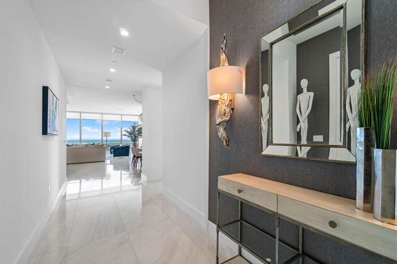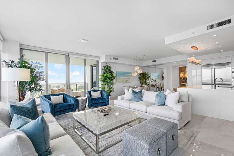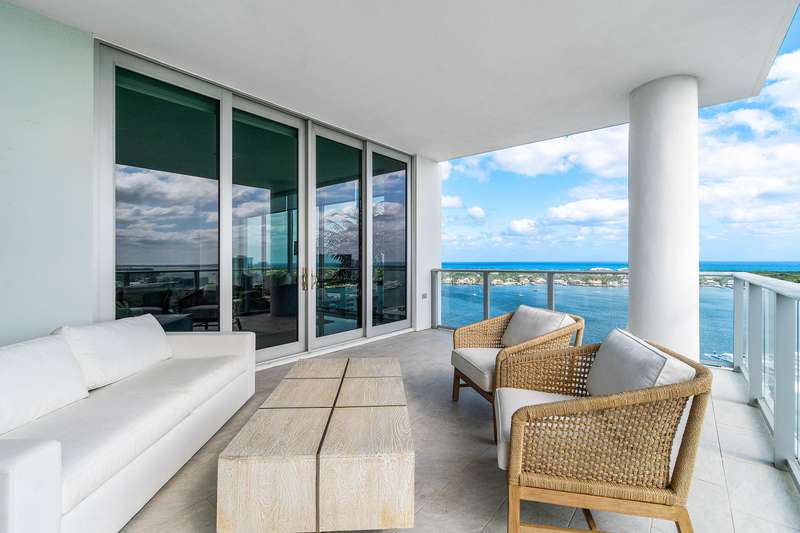 FULLY FURNISHED RENTAL IN THE SKY. Exquisite 18th Floor Residence in the Sky in The Palm Beaches. Introducing the stunning 3 Water Club Way, an exceptional opportunity to own Encore's most desirable Sapphire Floor Plan with captivating Southern Exposure. This luxurious 3-bedroom, 3.5-bathroom residence plus den/office offers the perfect blend of elegance and comfort with just over 2900 Sq Ft under air. As you enter, you are greeted by high ceilings and an inviting private foyer that opens directly into the residence. The chef's gourmet kitchen features top-of-the-line appliances and ample space for culinary creativity, making it the perfect hub for entertaining.