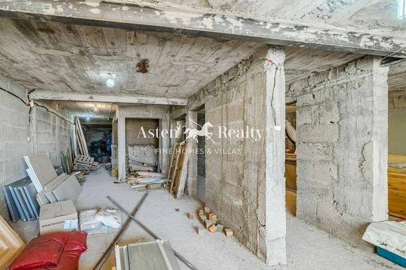 From this floor, stairs lead to the lower level, which connects to the spacious garden and garage, with an exit to another street. This floor is currently unfinished, offering the possibility to customize it entirely to your needs.