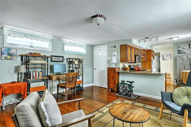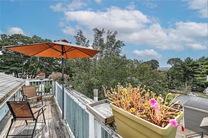 This top-floor 2-bedroom, 2-bath condo combines historic character with modern updates, offering a warm, well-managed community in an ideal location under 1 mile from many city amenities. An elegant turned staircase leads up to the generously sized unit with a versatile layout. A true standout of this home is a west-facing porch deck with sweeping views of the tree-lined East Side. Refinished hardwood floors, a new skylight, updated bath fans, and repainted walls uplift the interior, while building improvements include a new roof, structural porch replacement, and chimney waterproofing. Gather around the stone countertops at the breakfast bar. A modern full bath serves a bedroom down the hall. Upstairs, the primary suite features a tucked away in-unit laundry, a walk-in closet, and a skylighted full bath with a tub-shower combo. Just a mile from Brown University, downtown, the train station, groceries, and with innovative new restaurants right across the street, this condo blends convenience, charm, and comfort in one remarkable property.