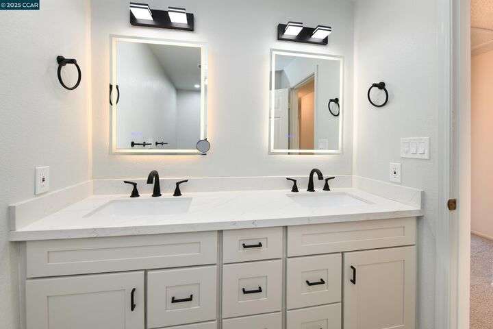Welcome to an upgraded residence in desirable Hidden Lakes. Built by SOC, this home blends timeless charm with modern sophistication, offering a lifestyle of comfort, efficiency, & style. Step inside to discover a chef’s kitchen, thoughtfully renovated with premium appliances & custom cabinetry. Plantation shutters adorn every window, adding elegance & privacy. The lower-level features Brazilian Cherry flooring, while the upper level has plush new carpeting. A full interior repaint brings a crisp, contemporary ambiance to every room. Equipped for energy-conscious living, with 18 solar panels and a Tesla Powerwall battery that can significantly reduce electric consumption. The garage has a Tesla EV charger. Climate control is a breeze w/an upgraded dual-zone A/C system with independent controls. New master closet designed by California Closets offering sleek organization & style. The guest bathroom was fully remodeled in 12/2024, featuring a walk-in shower & state-of-the-art fixtures for a spa-like experience. All toilets equipped with electric bidets, elevating everyday comfort & hygiene. The yards showcase water-tolerant landscaping, combining beauty with low maintenance. A refined retreat tucked on a court to add additional privacy! Feel the difference & eco-conscious living!
