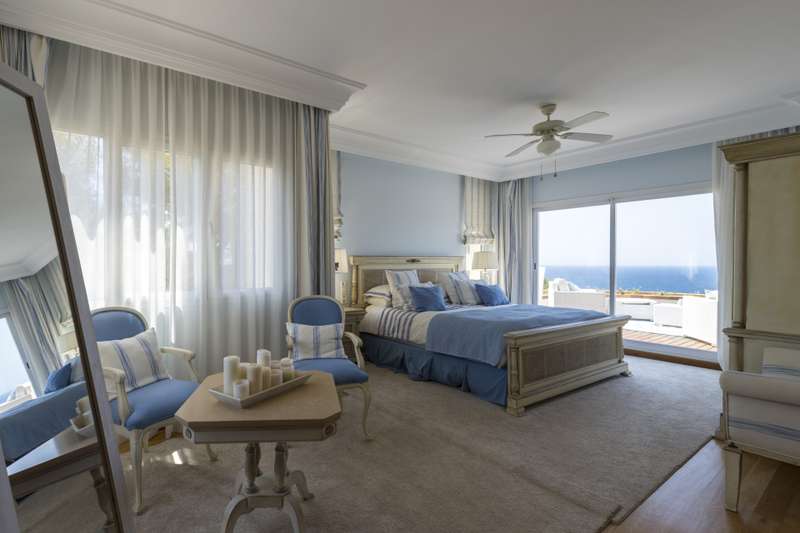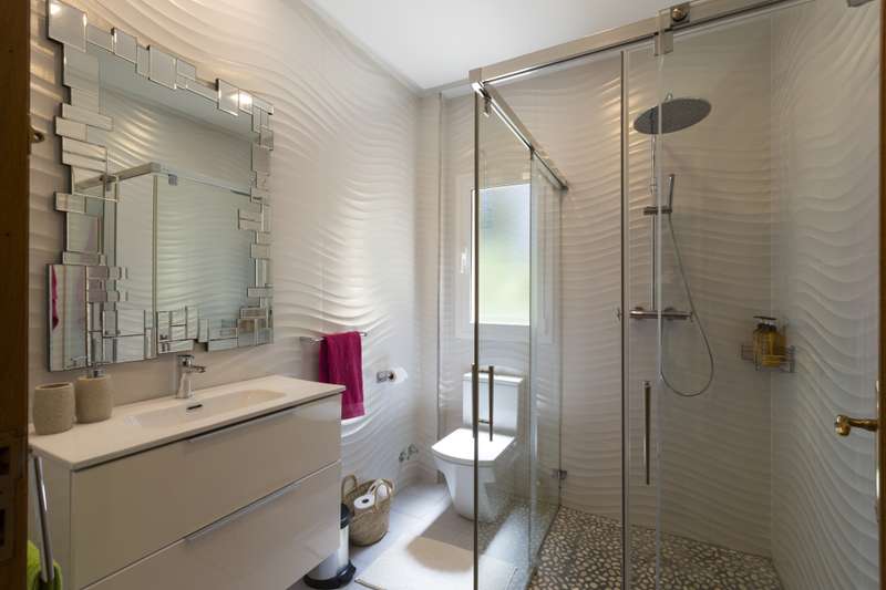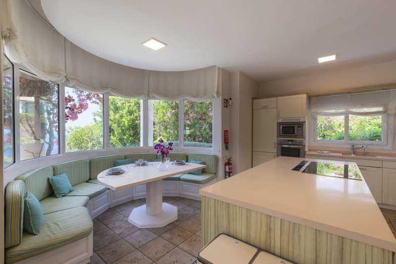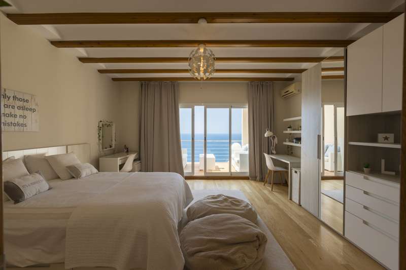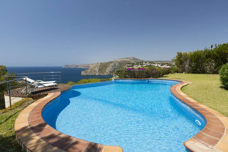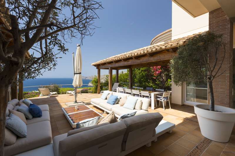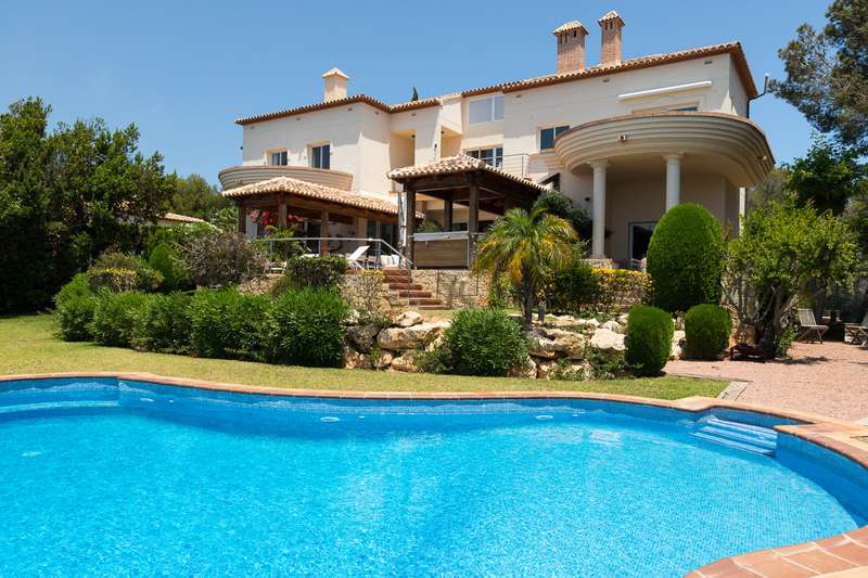 This exclusive villa is located in the prestigious Costa Nova area of Jávea, Alicante, and stands out for its breathtaking sea views. The property, set on a spacious plot of approximately 1,872 m², offers a private and privileged environment, ideal for those seeking comfort, privacy, and proximity to both the sea and all city amenities. The residence features five bedrooms, four full bathrooms (three of them en suite), and a guest toilet, ensuring comfort and space for the whole family and their guests. The main living room, together with the fully equipped kitchen and several terraces—both covered and uncovered—allows you to enjoy panoramic views and natural light throughout the year. The walk-in closet, built-in wardrobes, and laundry room add functionality and organization to the interior spaces. Among its highlights are the private pool, garden with automatic irrigation system, private garage, and a gym. The villa is equipped with air conditioning, central heating by radiators, partial underfloor heating, double glazing, security shutters, reinforced door, alarm system, surveillance cameras, and video intercom, thus guaranteeing maximum security and comfort. The property is in good condition and comes with features such as a barbecue, laundry area, utility room, and private terrace. Its privileged location, close to the beach, shops, and the town center, makes this villa a unique opportunity to enjoy an exclusive lifestyle on the Costa Blanca.