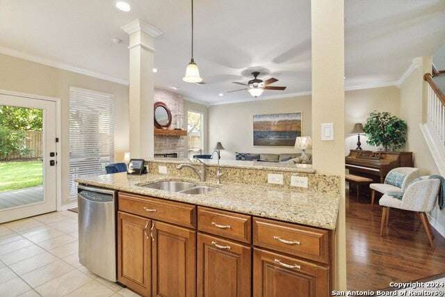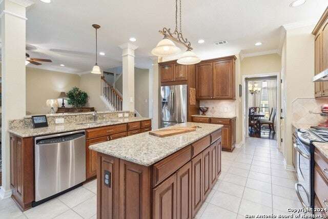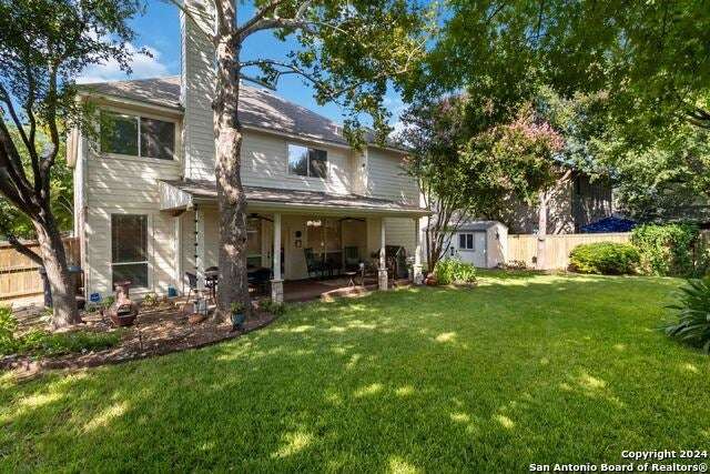 Come and enjoy this premium lot Perry home in the desirable Oakridge Pointe community! Experience the open floor plan with amazing upgrades and features, generous kitchen with abundant cabinet space, modern matching appliances, breakfast bar, multiple eating areas that practically shout entertaining AND an en-suite (5th bedroom) downstairs! When fun is on the agenda, you can enjoy a game or movie upstairs in your large, versatile media/entertainment room that is surrounded by four bedrooms and two full bathrooms. In the evenings you can relax under the covered patio surrounded by mature trees and custom landscaping, while listening to the pleasant sounds of nature. This home is a short walk to Steubing elementary and close proximity to other amazing schools including UTSA. You can find shopping, medical facilities, entertainment and more within minutes from home. Let us start to make this home your own home, sweet home today!