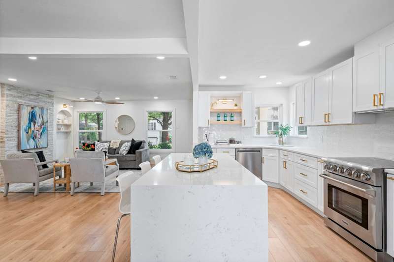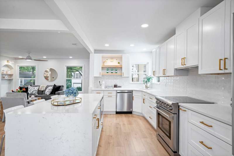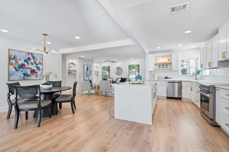 Welcome to this beautifully renovated 3-bedroom, 2-bath home, perfectly situated on a quiet block in the heart of the charming Hollywood Heights neighborhood and zoned to the highly sought-after Lakewood Elementary.With incredible curb appeal and filled with natural light throughout, this home offers an open, flowing layout thats perfect for both everyday living and entertaining. The inviting living room is anchored by a stone accent wall with custom lighting and arched built-in shelving, creating a warm and stylish focal point. Throughout the home, enjoy new flooring, fresh interior and exterior paint, and updated lighting fixtures including new can lighting.The thoughtfully designed kitchen features custom soft-close cabinetry with designer hardware, a statement waterfall island with extra storage, quartz countertops, a walk-in pantry, and a built-in coffee bar. High-end appliances complete this beautifully functional space.The oversized primary suite boasts vaulted ceilings and a spacious walk-in closet, while the spa-inspired ensuite bath features custom cabinetry with soft-close drawers, quartz counters, designer mirrors and glass, and an oversized custom shower with a soaking tub and dual shower heads.Two additional bedrooms offer great closet space and share a beautifully updated secondary bathroom with a tub-shower combo.Outside offers even more with a new roof, all-new windows, an 8-foot privacy fence, lush landscaping with fire pit, new sod, a covered pergola area perfect for outdoor dining or lounging, and a large two-car garage.Ideally located just steps from Lindsley Park, the Santa Fe Trail, and White Rock Lake, and just moments from Lakewood Country Club and all the beloved shops and dining at Lakewood Shopping Center, this home offers the very best of East Dallas livingall wrapped up in the historic charm of Hollywood Heights. This is one that you do not want to miss!