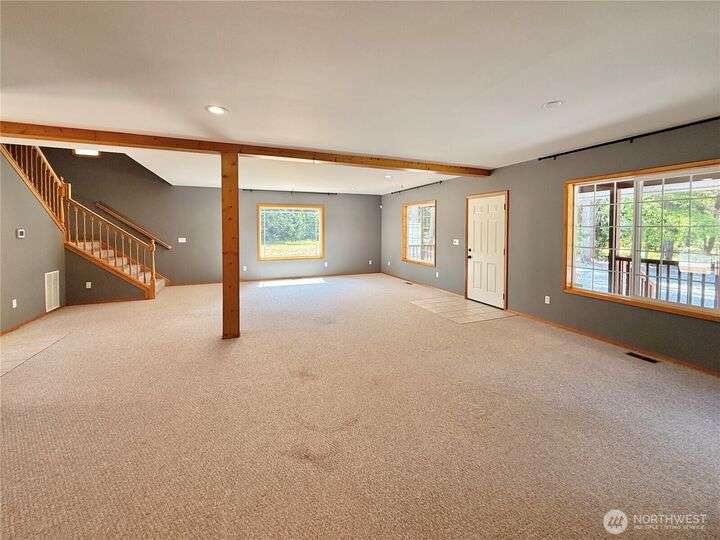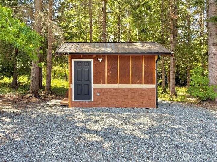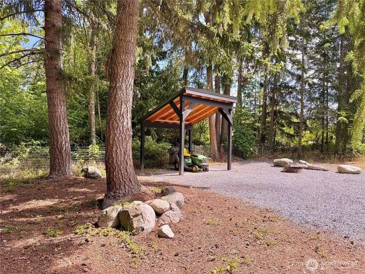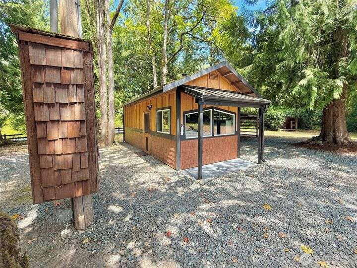 REDUCED - 3 bed/2 bath home on 2.24 acres with a standout detached office or workshop. Spacious kitchen features custom wood cabinetry & generous counter space overlooking a sunken family rm w/ a woodstove, den w/ built-ins, & bedroom. Large living room w/ natural light. Primary suite features dual walk-in closets, double sinks, & walk-in shower. Covered front deck & open rear deck. Fully fenced lot w/ gated entry, ample yard space, & fir trees along the perimeter. The stylish office/workshop looks like something out of Pinterest. Multiple exterior storage options. Heat pump provides both heating & A/C. Private, countryside setting & great location for commuting — under 30 mins to Yelm or Spanaway, & just over 30 mins to JBLM or Puyallup.