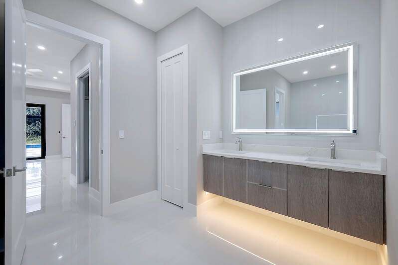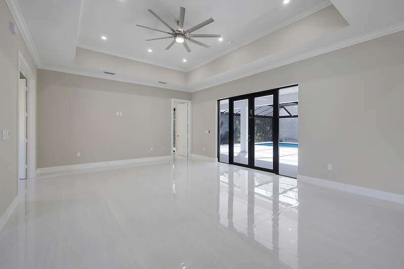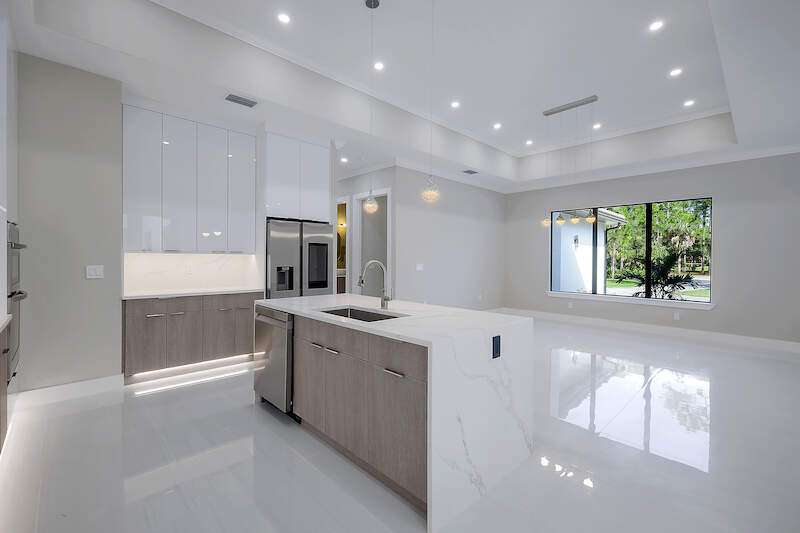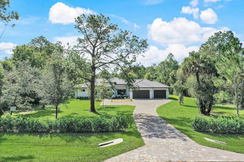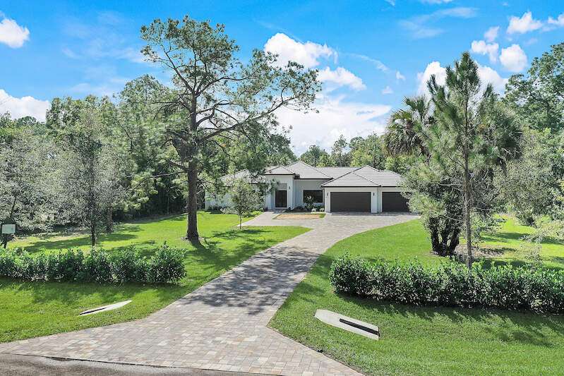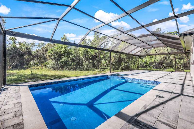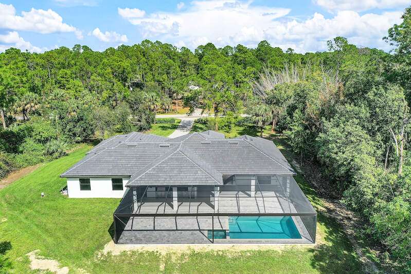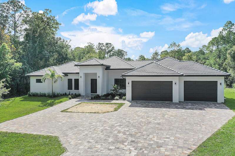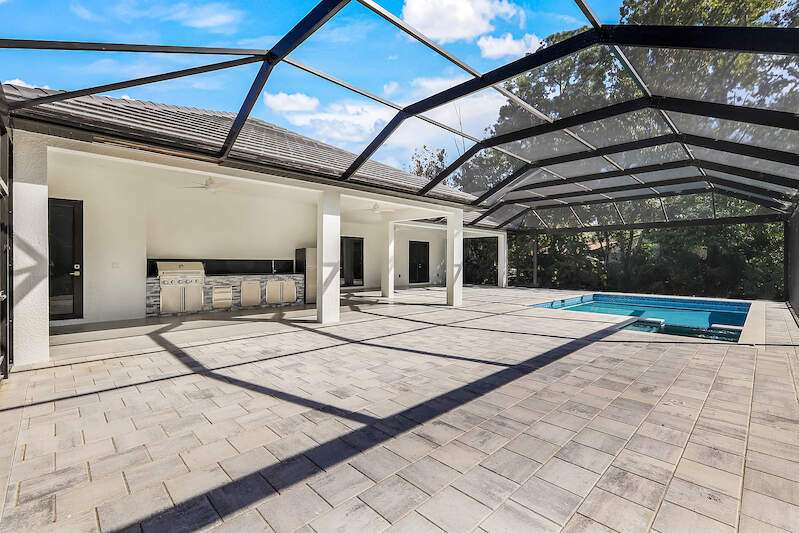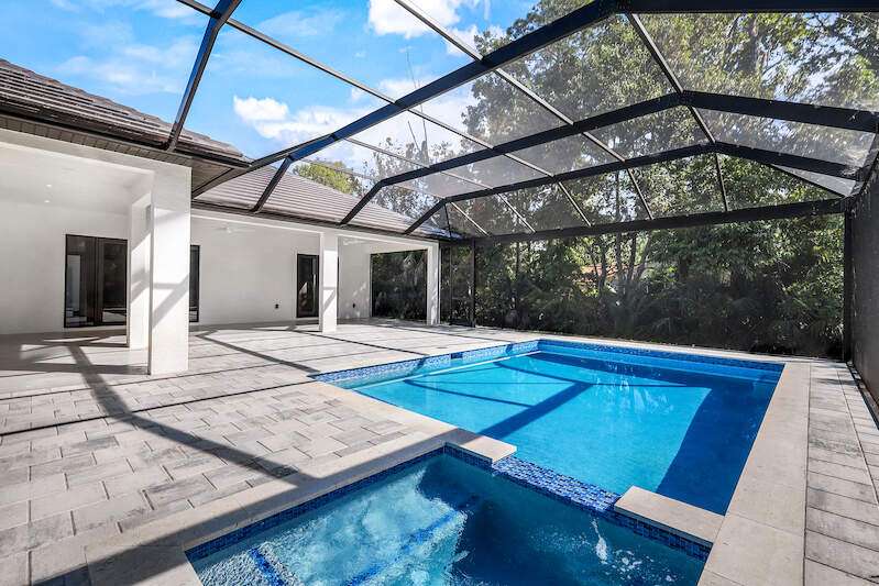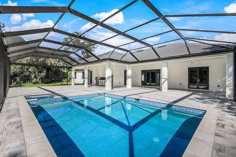 Desirable Weber Woods! Own this gorgeous new construction home with vast outdoor areas including outdoor, pool and spa. This home is ideal for entertaning. The kitchen offers a quartz waterfall island design and ceiling high modern cabinetry and cabinet under lightning. Cozy master suite with a large shower, soaking tub and 2 large walk in closets. Maximizing your space with four bedrooms and a den. Enjoy clean water with a full house reverse osmosis system. Privacy with a calusa hedge along the front.