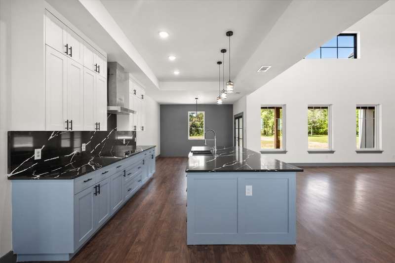 Welcome to this stunning new construction home located in the highly desirable gated community of The Shores on Richland Chambers Lake. This resort-style neighborhood offers top-tier amenities including a clubhouse, pool, marina, boat ramp, and fitness center. Nestled on just over an acre, this expansive 5-bedroom, 3.5-bath residence combines modern elegance with everyday comfort. Inside, youll find an open-concept design filled with natural light, soaring ceilings, and oversized windows that create a bright and airy feel throughout. The chefs kitchen is ideal for entertaining, featuring a large center island, generous counter space, and seamless flow into the living and dining areas. A beautifully appointed living room centers around a cozy fireplace, while a second fireplace in the den adds extra warmth and character. The primary suite offers a true retreat, complete with a luxurious ensuite bath featuring a garden tub, separate shower, and dual walk-in closetsone of which connects directly to the laundry room for added convenience. A private in-law suite with its own full bath is also located on the main level, providing comfort and privacy for guests or extended family. Upstairs, you'll find three additional spacious bedrooms and a thoughtfully designed staircase that adds architectural charm to the home's interior. Enjoy peaceful country living with the luxury of lakeside amenities just moments away. This home offers more than just a place to liveit delivers the lifestyle you've been dreaming of.