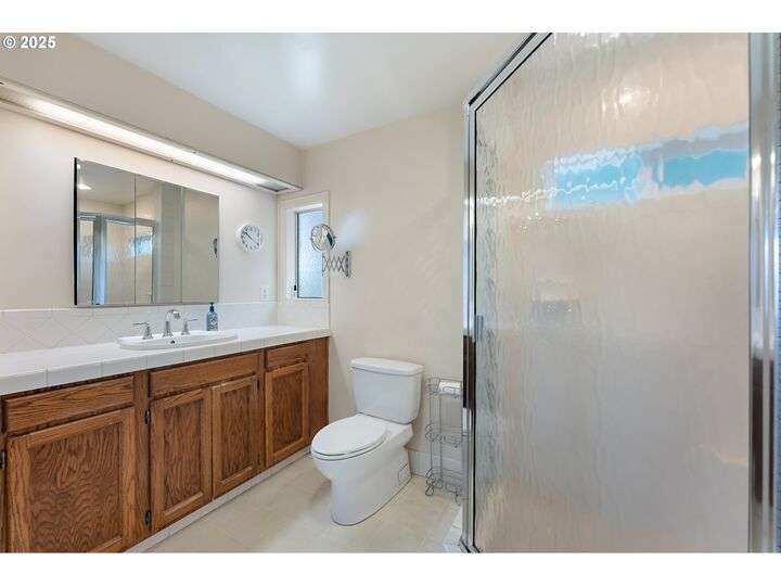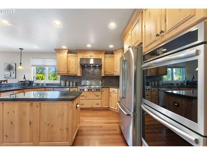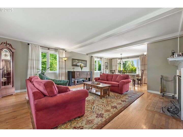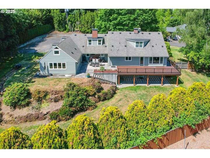 Open Sat 9/13 1-3pm MUCH Better Price! Rooms for everyone, with a huge fenced back yard, oversize private front yard ready for your RV, BBAll or Pickleball Courts. This beautifully updated 4-bedroom, 5-bath home offers 4,569 sq ft of flexible living across three spacious levels and is ideal for hosting or finding your own quiet space. The primary suite is conveniently located on the main floor, while the lower level has been thoughtfully remodeled to include a large, bright laundry area with storage, and an updated great room perfect for gathering or relaxing. The gourmet kitchen is a chef’s dream, featuring solid alder wood cabinets, stainless steel appliances, a 6-burner KitchenAid gas cooktop, double built-in ovens, granite countertops, and a central prep island. Hardwood floors flow through the main floor and upper-level bedrooms. The home is filled with beautiful natural light and a warm, traditional feel. Three interior wood-burning fireplaces add character and comfort throughout. Outside, the home sits on a private .69-acre lot with a wide front yard and plenty of paved parking—including space for RV parking with water and electrical hook-ups. The fenced backyard is a true retreat, with a spacious Ipe wood deck (a tropical hardwood prized for its beauty and durability) and a wood-burning outdoor fireplace, perfect for enjoying the Mt. Hood view and entertaining in any season. The Presidential roof has many years of life to go too! Front yard could host pickleball court? Lower level could be 5th bedroom w/family ADU. This is a rare opportunity to own a refined and welcoming home in a private and naturally beautiful setting.