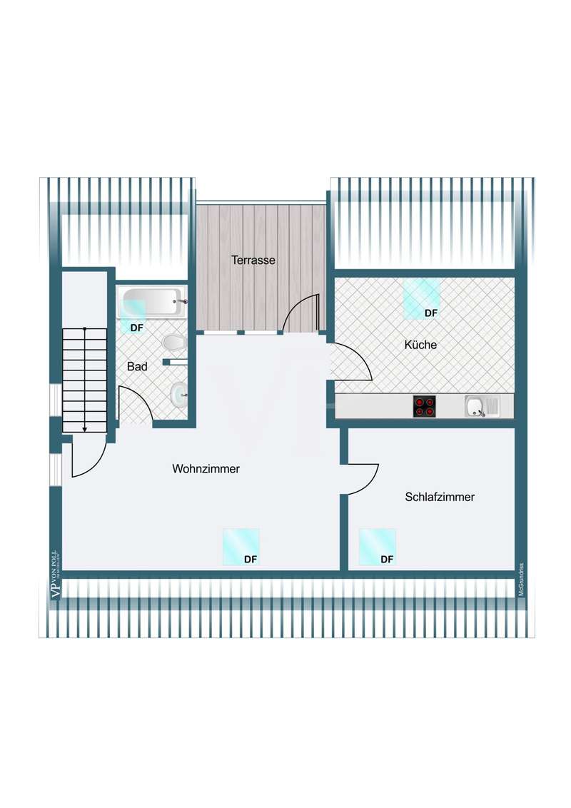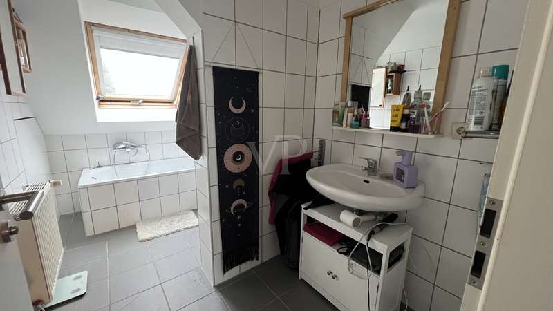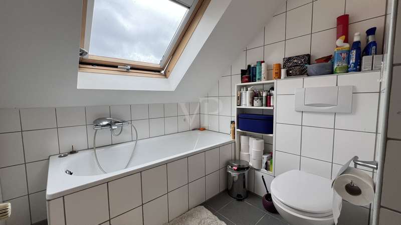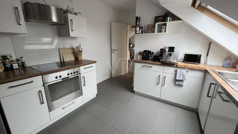 Charming 2-room top-floor apartment with a feel-good atmosphere in a sought-after location This lovingly maintained 2-room attic apartment is located in an apartment building built around 1900 with a total of 6 parties and combines historical charm with modern living comfort. With around 57 m² of living space, it offers a well thought-out room concept that harmoniously combines comfort and openness. The cleverly designed rooms make optimum use of every square meter and are characterized by the characteristic pitched roofs, which give the apartment its special, homely charm. Numerous windows provide bright, friendly lighting conditions and create a pleasant living atmosphere. The heart of the apartment is the spacious living area - ideal for relaxing, reading or socializing with friends. From here, you can access the small, charming balcony with a view of the greenery, which invites you to linger and enjoy - perfect for enjoying the peace and quiet after a long day or relaxing in the sun. The modern fitted kitchen, which was installed as part of the extensive renovation in 2015, is included in the purchase price. It impresses with its functionality, timeless design and ample work and storage space. The quietly located bedroom offers space for a double bed and creates a pleasant oasis of retreat. The bright bathroom has a bathtub and practical storage space. Overall, the apartment is in a very well-kept condition. As part of the renovation in 2015, all surfaces were renewed, the kitchen modernized and the furnishings brought up to a contemporary standard. The individually adjustable floor heating also ensures efficient warmth and comfort as required. The apartment is currently let reliably until the end of 2025 - a clear advantage for investors who value a stable, long-term tenancy. In view of the sustainable development of the location and the high quality of living, this property offers attractive future prospects. The location is also impressive: shopping facilities, cafés, restaurants and all everyday amenities are in the immediate vicinity. At the same time, you can enjoy the tranquillity of green surroundings - an ideal mix of urban life and relaxation. This apartment is the perfect combination of investment and residential idyll - well-maintained, modern, charming and future-proof. To give you a better idea of this apartment, we have digitally visualized 2 rooms for you. Convince yourself of this special attic apartment with flair - we look forward to your inquiry and your viewing appointment!