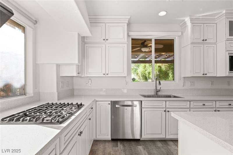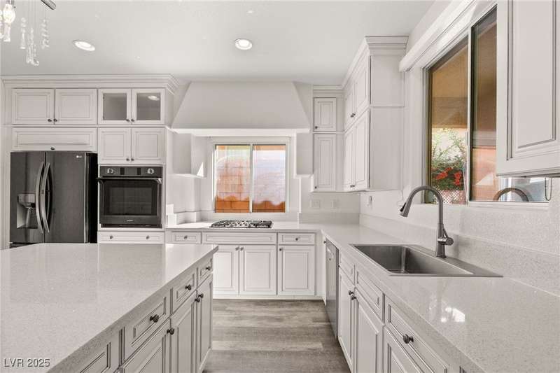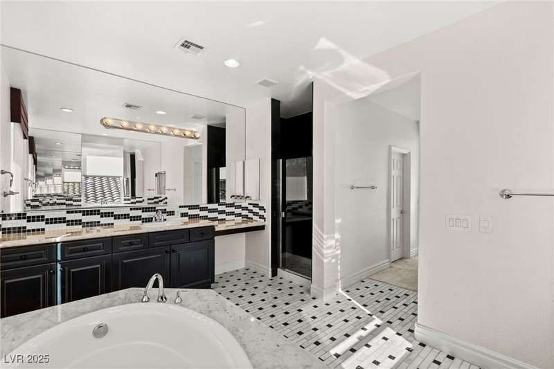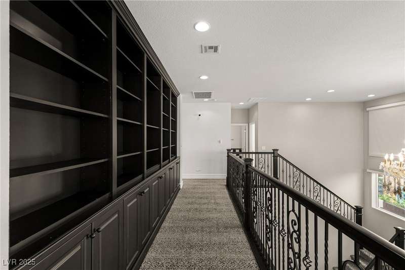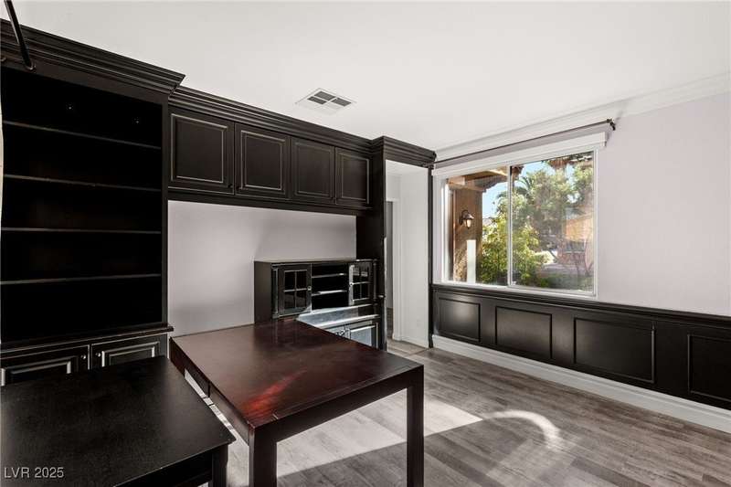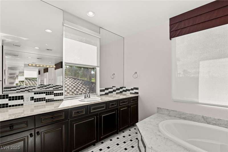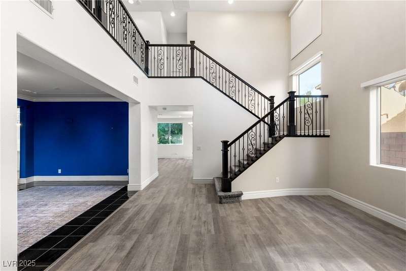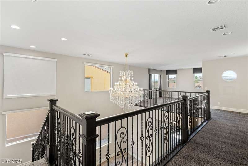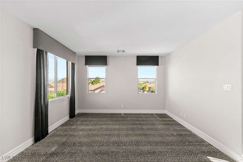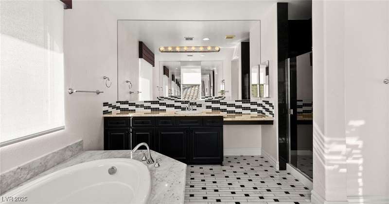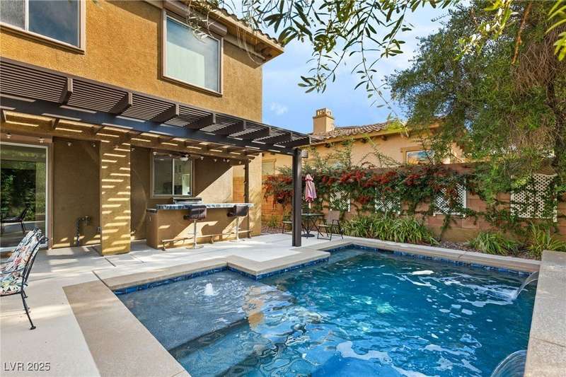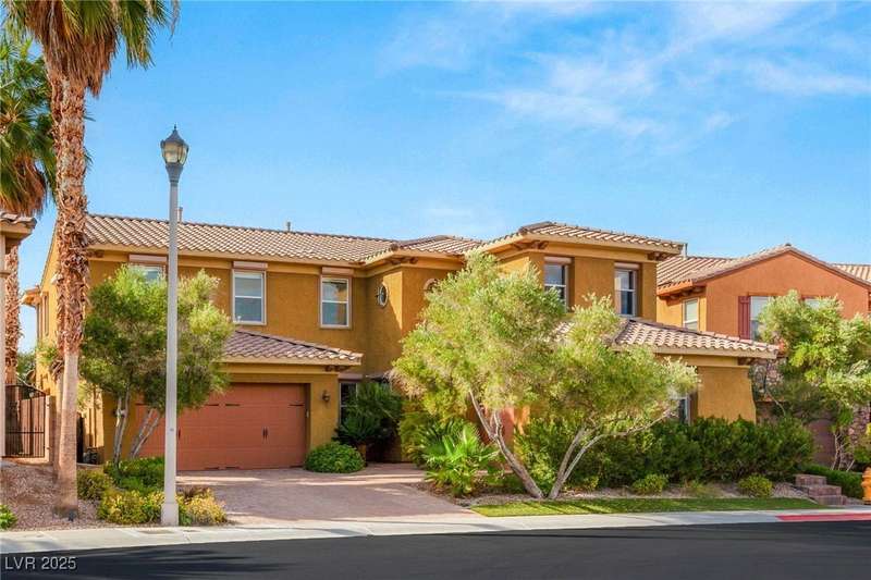 This European-inspired, former model home sits on a premium golf course lot in the guard-gated community of Tuscany, offering breathtaking golf course, mountain, city, and Strip views. Spanning nearly 3,800 sq. ft., this immaculate residence features 3 spacious bedrooms (with an optional 5-bedroom layout), 3 full baths, a 3-car garage, and vaulted ceilings that create. Inside, you will find custom cabinetry, a gourmet kitchen designed for both style and functionality. The downstairs den with a full bath provides a flexible space perfect for a home office or guest suite, while the loft upstairs offers additional living or entertaining options. From the dramatic staircase with wrought-iron railings to the thoughtfully upgraded finishes throughout, every detail exudes elegance and craftsmanship. Enjoy the stunning views from your backyard oasis. Residents of Tuscany Village enjoy world-class amenities. This home truly has it all!