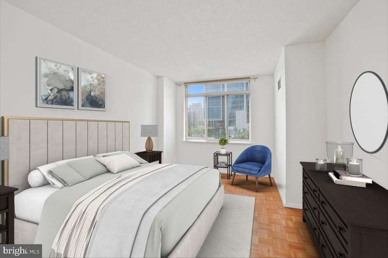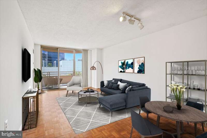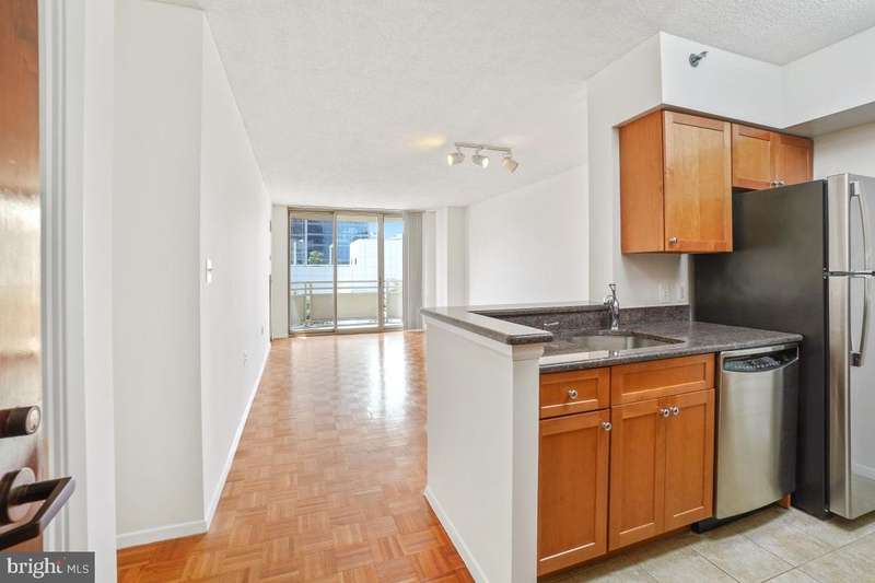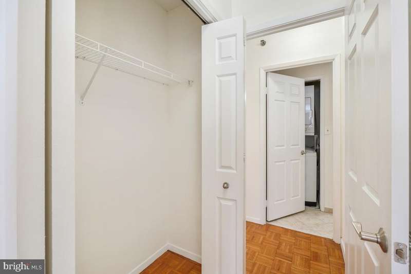 Welcome to 4801 Fairmont Avenue #408! This 1 bed, 1 bath unit with in-unit washer/dryer is ideally located near Woodmont Triangle in Bethesda! Enter in and notice the parquet wood flooring throughout. This unit has an updated galley kitchen that flows right into the combined living and dining space with access to the large south facing balcony. There is a bedroom with a walk in closet and an additional closet. The updated bathroom is where the laundry is located. This community is ideally located just steps from shops & restaurants, the metro, NIH & Walter Reed and so much more!