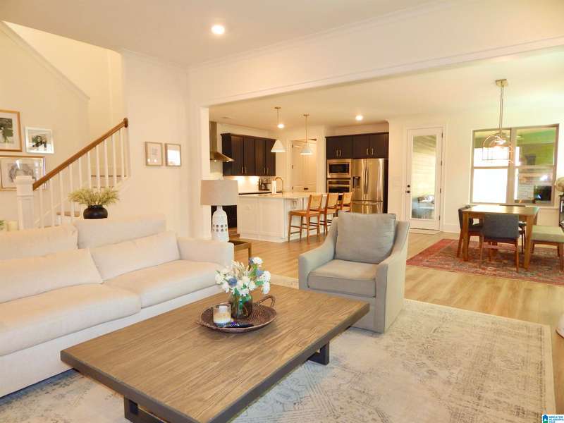 This former model home on Colton Rd (where homes get a driveway, private yard & nature view) is a beauty! Enjoy a community-focused neighborhood! Walk to shops, restaurants, the neighborhood grocery, the Finley Center & more! Stroll sidewalks & common green spaces, meet neighbors in the clubhouse, or entertain them on your front porch or covered back patio (with gas fireplace!). Inside, open spaces, high ceilings, great natural light & designer finishes await you. The French door office & wood beam ceilinged foyer greet your guests before they flow into the spacious living, dining & kitchen entertainment space. Your designer kitchen has a fantastic island/breakfast bar, quartz, gas, stainless, under cabinet lighting, dbl pantry - everything you'd expect - just steps from the ML garage, mud/drop-off, laundry & powder rooms. The luxurious primary suite offers a walk-in closet, garden tub, sep vanities & sep shower. Secondary den, 2 spacious bedrooms w/ walk-ins & a full bath upstairs.