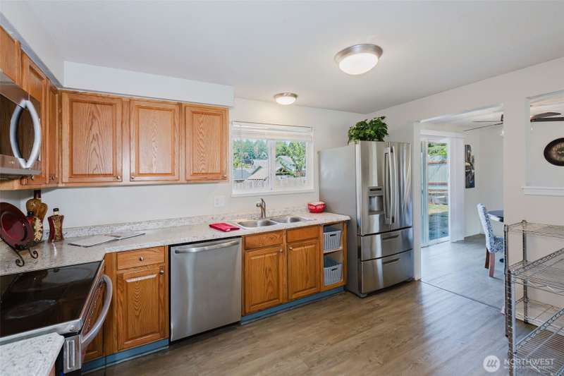 Discover this fresh-on-the-market 4 bedroom, 1.75 bath rambler nestled in the heart of Central Kitsap. Featuring an open concept living, dining, and kitchen area—perfect for entertaining and everyday living—plus a large backyard for outdoor activities or gardening. The home boasts a two-car garage and “good bones,” offering a solid foundation for your personal touches. Wonderful Ductless mini splits offer air conditioning & heat. Enjoy easy care LVP flooring through out. While it needs a little TLC to truly shine, it presents a fantastic opportunity. Close to Bases, shopping, Ferries Don’t miss your chance!