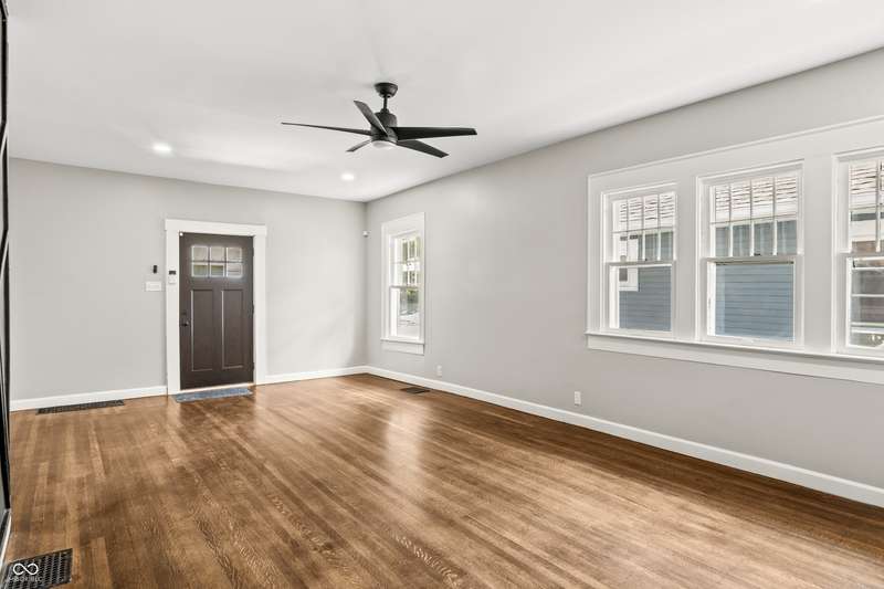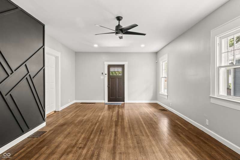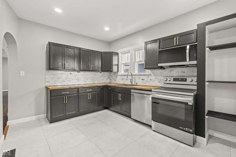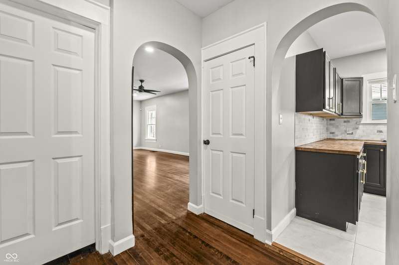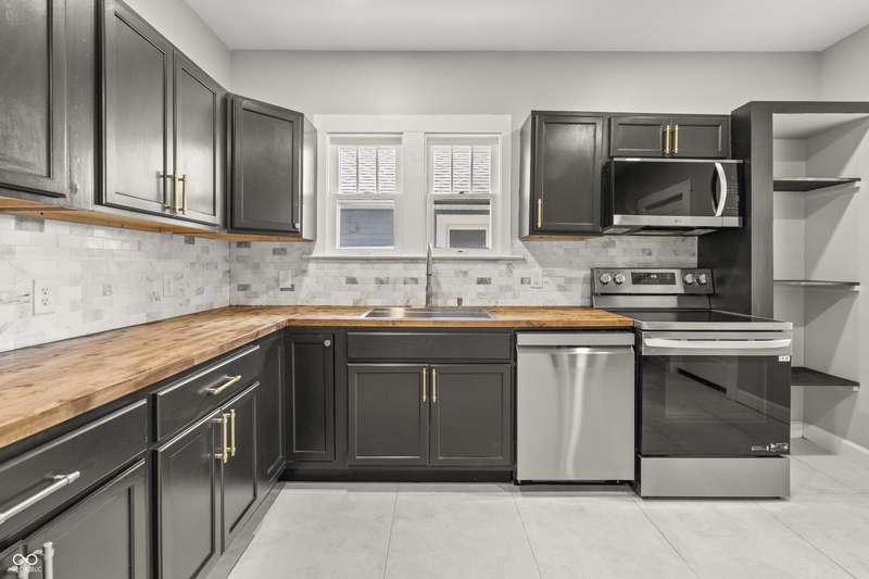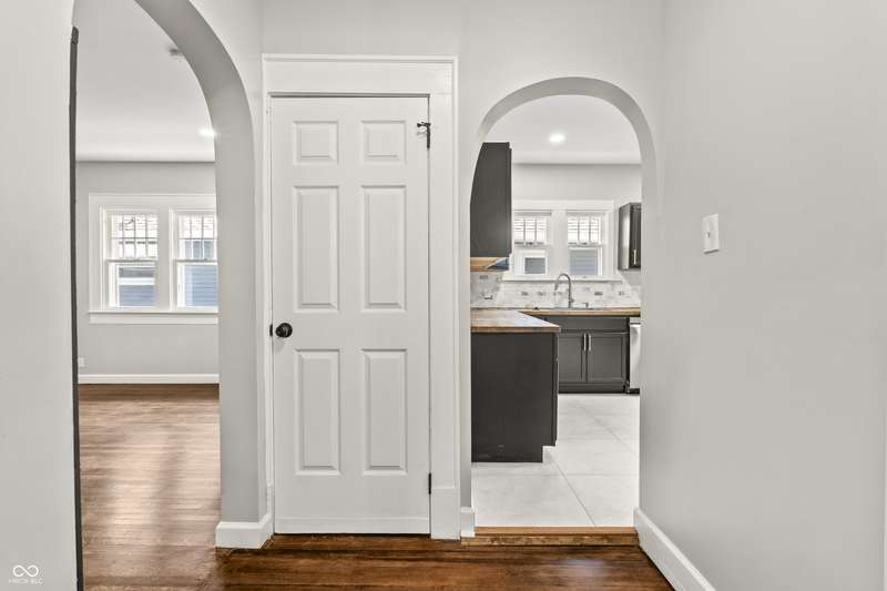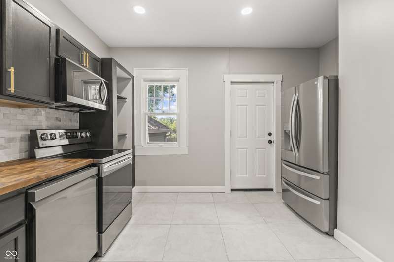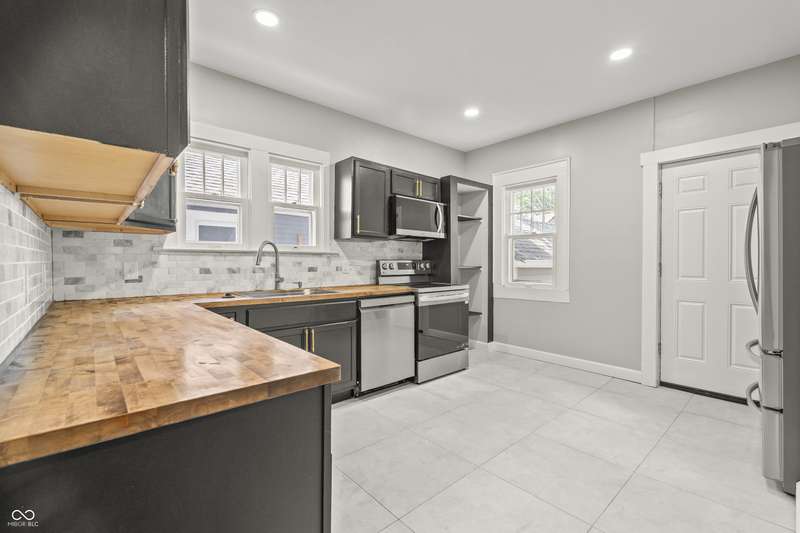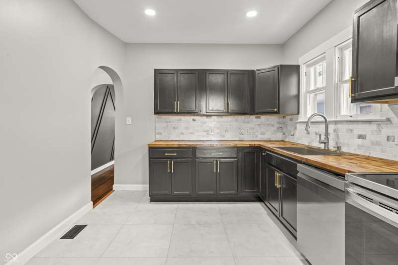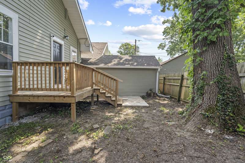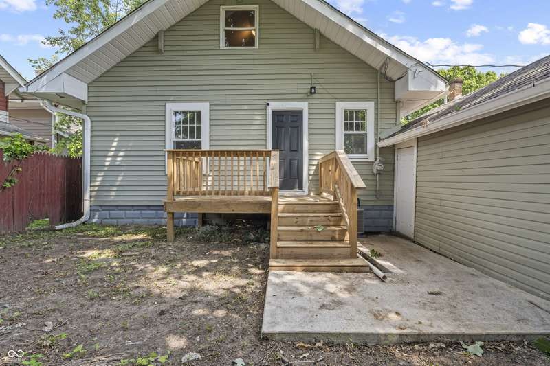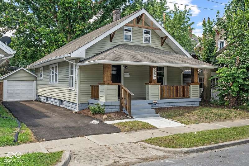 This beautifully updated 4-bedroom, 2-bath home is just minutes from downtown Indianapolis. Located on a street currently transitioning from one-way to two-way, the neighborhood is becoming even more convenient for daily living and guest access. Step inside to find refinished hardwood floors on the main level, durable vinyl upstairs, and a modern kitchen featuring stainless steel appliances, butcher block countertops, and generous cabinet space. Both bathrooms are updated, and the home offers plenty of natural light throughout. Enjoy a covered front porch for relaxing evenings or a private back deck for entertaining. A rare driveway and detached one-car garage provide valuable off-street parking in this urban setting. With four spacious bedrooms, two full baths, and move-in ready updates, this home delivers the space, style, and convenience you've been looking for.