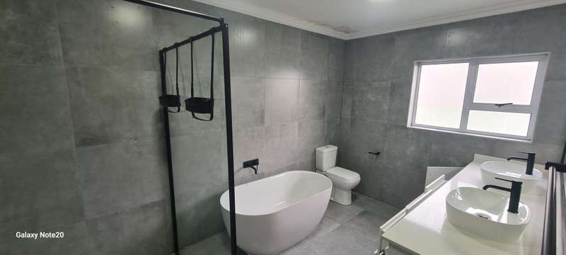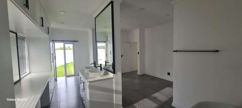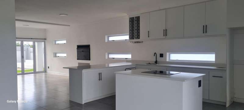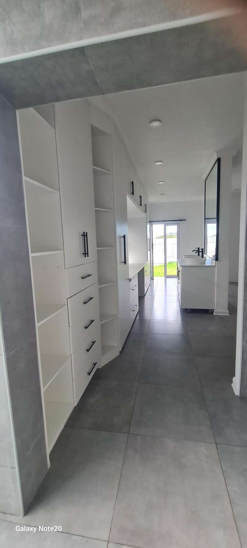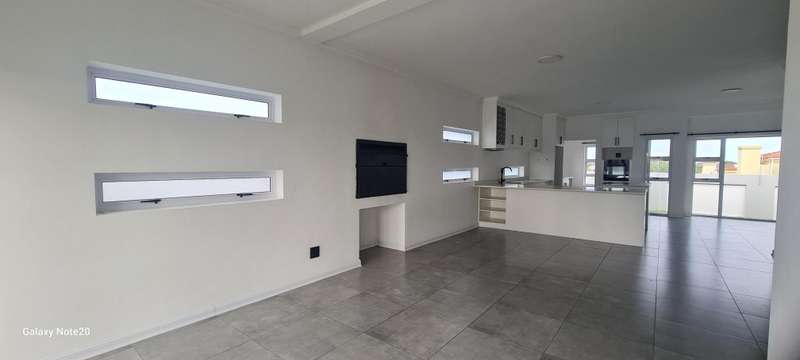 A beautiful home in Aston Bay waits for a new owner. The property is new, offers you 3 spacious bedrooms. The main bedroom is something to dream of. It has a deep oval bath, huge shower as well as a private outside shower, lots of cupboards, HIS and HERS basins and lots of privacy! The other 2 bedrooms share another beautiful bathroom. A linen cupboard, a lobby with a basin and a small private area make this part of the house private. The lovely kitchen (with separate scullery) and open plan dining and entertaining area has an indoor braai, walks out through sliding doors onto a boma where you can relax for hours and hours! The lounge area has a fire place for the cold winter evenings. The property is new, modern and safe. A double garage is connected to the house and the property is fully walled. has electric fencing and a heavy duty automated gate. Aston Bay is a small coastal town next to Jeffreys Bay. The community is one of care, friendliness and love. The Seekoei River Nature Reserve offers you bird watching, small game and love vegetation. A special smell makes this wonderful town ONE of a KIND!