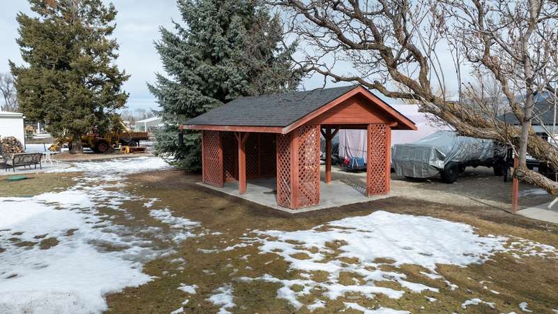 Nestled on 2.59 acres this 3-bedroom, 3-bath home provides the perfect blend of comfort and functionality. The home offers generous living spaces with an open layout, inviting kitchen, cozy family room and a large laundry/mudroom for hobbies and storage. Enjoy the park-like yard with a gazebo, firepit, several mature trees for privacy and a ditch with irrigation rights. An existing rental pad generates steady monthly income. A second trailer has its own well, septic, and utilities. Perfect for income-producing rental, business space, or guest quarters. Property is also zoned for commercial use. With no covenants or HOA's, the possibilities are endless. Whether you're looking for a primary residence with room to grow, a small hobby farm, or rental income to offset cost, this property offers flexibility, privacy, and location in one compelling package.