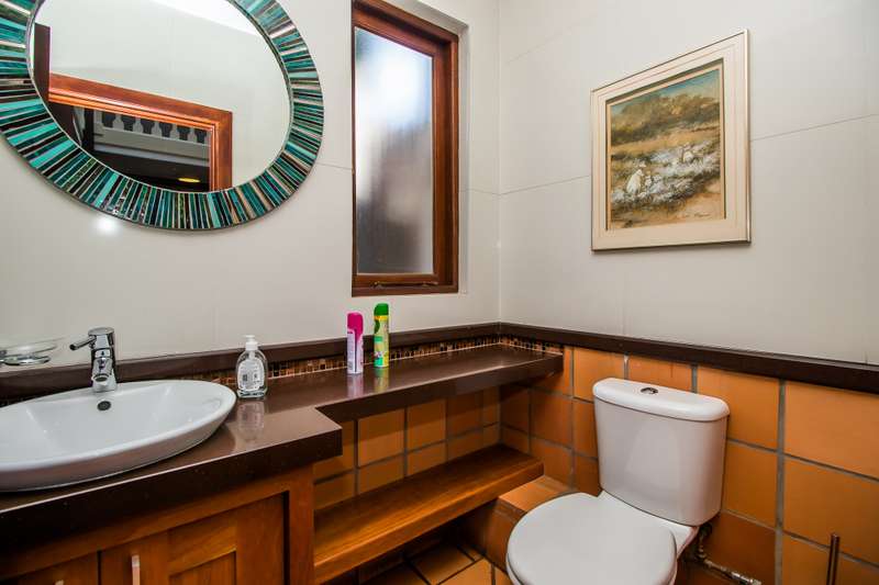 Nestled in the heart of Mooikloof in a park like garden lies a home that exudes luxury and old world charm. This corner property is larger than the usual at 1.2 hectare and offers a main house with 3 bedrooms and an attached 2 bedroom flat with quality finishes through out. Further buildings on the propery includes: stables / pool with entertainment pool house / floodlit tennis court with tennishouse and built in braai / gazebo with pizza oven and gas braai next to a koi pond / borehole / vegetable garden and carport. Easy flow between the living areas of the lavish main house lead from a double volume dining room to central bar area serving two lounges and a tv room opening on to covered veranda. The lounge and dining room opens up onto the pool set in composite decking and the pool house with 65 inch tv and 4 speakers ensuring seamless outdoor and indoor entertainment. The large guest suite with bathroom on the ground floor also opens onto the pool area. The modern kitchen is a master chef delight with central island and double oven and integrated dishwasher. The laundry as well as the scullery is separate. Going up the wide stair case you will find a further bedroom and a master suite of rooms with dressing room and a bathroom and bedroom opening on to a private veranda overlooking the lush garden and giant trees. The library overlooks the dining room and foyer below. Through the tv room down stairs you can link in to the granny flat which is attached but totally private. Open plan kitchen with dining room and a lounge opening on to a private covered veranda. Two bedrooms and 2 bathrooms complete the perfection. The tennis courts are floodlit with a tennis house and built in serving bar and braai area. For lazy Sunday lunches outside the meandering water feature leads to a koi pond next to a gazebo with pizza oven, prep bowl, gas braai and bread oven. Also includes: Stable complex , carports, vegetable garden ,borehole and jojo tanks.