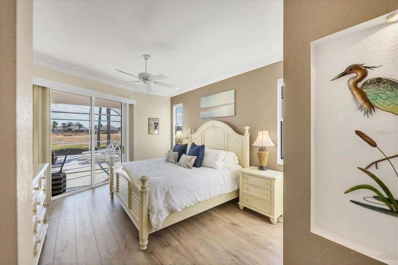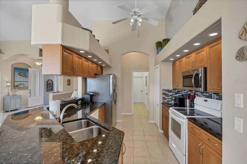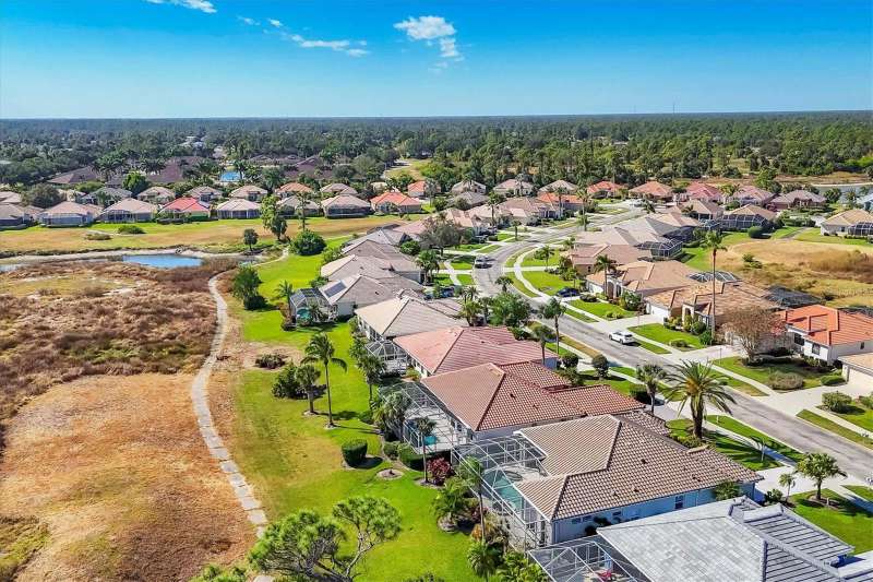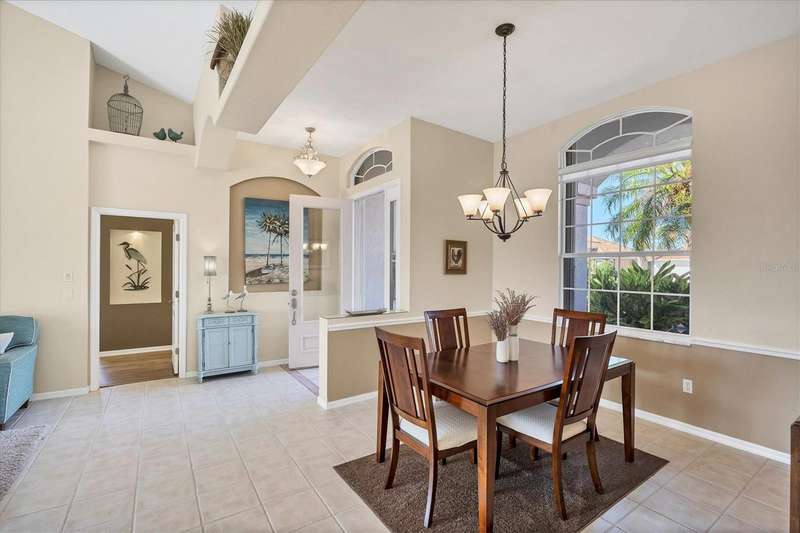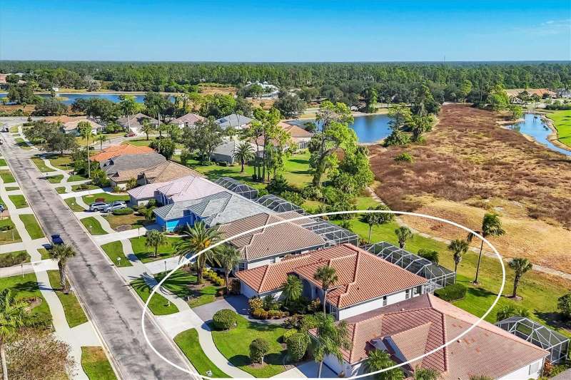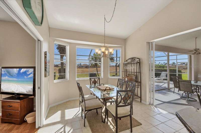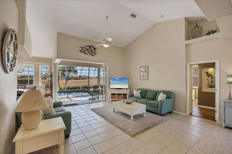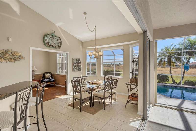 Welcome to Bobcat Trail, one of North Port’s premier gated communities offering resort-style amenities and a relaxed, maintenance-friendly lifestyle. Located in a highly desirable “X” flood zone, this beautifully maintained and move-in ready home is being sold turnkey furnished and features numerous recent updates for peace of mind, including a new water heater (October 2025), new roof and A/C (2025), microwave (2025), refrigerator (2024), and pool pump (2024). Designed for both comfort and flexibility, the home offers 2 bedrooms, 2 baths, and a versatile den that can easily serve as a home office or third bedroom. The den is enhanced with newer plank tile flooring, while the kitchen showcases white cabinetry, a decorative tile backsplash, and granite countertops. The primary suite features updated flooring (2024), two walk-in closets, and a spa-like bath with a walk-in shower, jetted tub, and dual sinks. The second bedroom also includes attractive plank tile flooring. Step outside to relax by your heated pool and enjoy the private, peaceful setting. Residents of Bobcat Trail appreciate access to a community pool, activity center, fitness facility, tennis and pickleball courts, and a vibrant social calendar—all just minutes from I-75, shopping, dining, and Gulf Coast beaches.