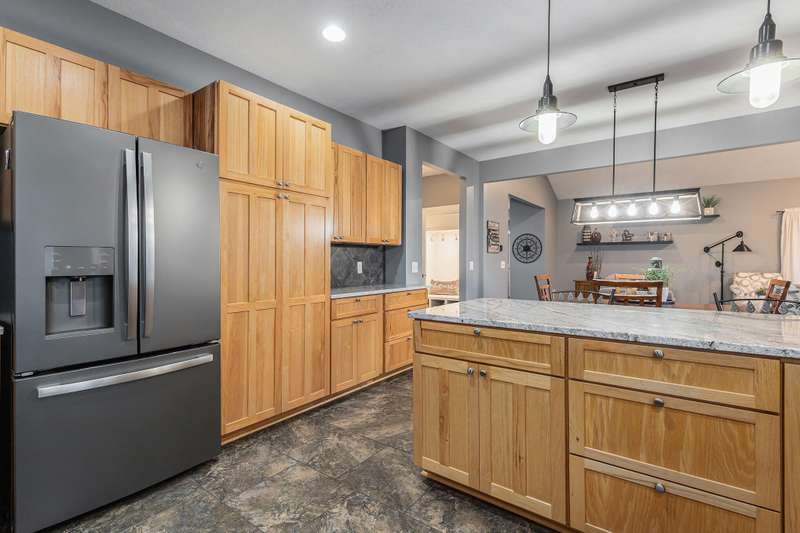 This one is a show stopper! Immaculate condition with upgrades everywhere! Gorgeous hardwood floors, hickory cabinets, granite and quartz countertops, and manicured landscaping to name a few. The Primary bedroom has vaulted ceilings, an ensuite bathroom featuring a jetted tub and tiled shower, and a large walk in closet with custom shelving. The kitchen is highlighted with 3 year old matching slate appliances and an abundance of storage. The main living area has vaulted ceilings and features a gas fireplace with a floor to ceiling stone surround. Unwind in the walk out basement that features a wet bar and mini fridge and plenty of space to entertain. As if that isn't enough, don't forget to relax on your covered composite deck overlooking your spacious backyard. This home is completely turn key! The roof, furnace, a/c, water heater and appliances are all new in the last 3-4 years. Don't miss the beauty! Schedule your showing today!