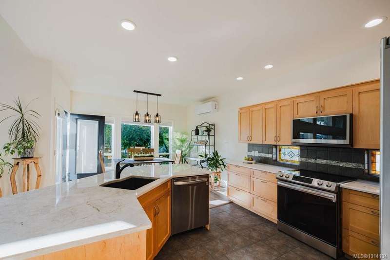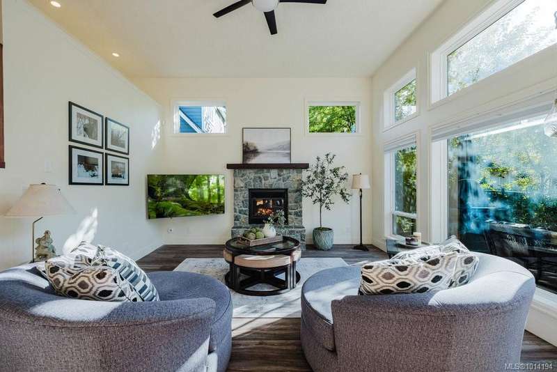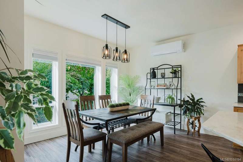 Cozy, charming and beautifully maintained, this 3 bed, 3 bath home offers 2,100sqft of comfortable living on a quiet no-through street in a welcoming family neighbourhood.The sunny west-facing backyard features mature, lush landscaping and a private 274 sqft patio—ideal for relaxing and BBQs.The open-concept layout includes vaulted ceilings, large windows, a gas fireplace, a main floor bedroom with full bath, laundry and kitchen closet pantry.Upstairs are two spacious bedrooms and two more bathrooms.Updates include appliances, granite countertops, hot water on demand, heat pump, blinds, fresh paint inside and out, artificial turf, and more. Enjoy a triple driveway, double garage with storage and EV charger, and full crawlspace for additional storage.Steps to parks, minutes to schools, shopping and amenities with Bear Mountain Resort - golf, spa, dining, tennis and fitness just a quick drive up the mountain. A warm, welcoming home ready for new memories to be made!