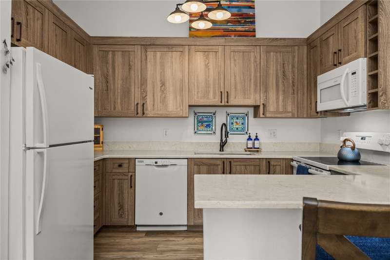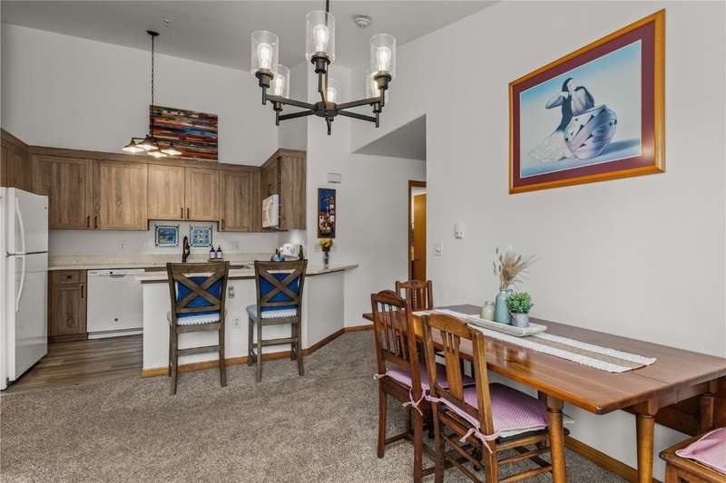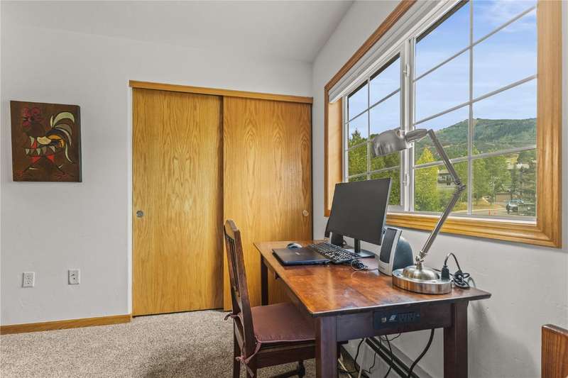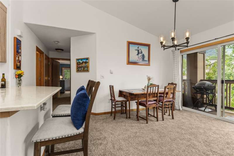 This inviting top-floor condo in Sunray Meadows is set in one of Steamboat’s most convenient and well-maintained communities. With the bus stop just steps away, walking distance to Steamboat Resort, a walking path through the common area, and quick access to the nearby bike path, this location makes mountain living both easy and enjoyable. Inside, you’ll find a thoughtfully updated home that combines style and comfort. The vaulted ceilings create a bright and airy feel, while the updated kitchen features an eating bar, slab countertops, newer cabinets with modern hardware, and newer appliances—perfect for entertaining or everyday living. Additional updates include newer carpet, light fixtures, and bathroom vanities with solid-surface countertops. The en-suite primary bedroom is a private retreat with its own deck, an updated bath, and a spacious layout. The living room is wired for speakers, and the large front deck offers great views of Steamboat Resort, creating the ideal spot to relax. Practical features enhance everyday convenience, including a separate laundry room with a new washer and dryer, and a one-car garage with plenty of storage space. The entryway includes a large closet with room for coats, hats, and boots—perfect for every season. With a pleasantly designed community, strong HOA maintenance, and excellent proximity to the mountain, this condo is ready to be enjoyed as a full-time residence or second home.
