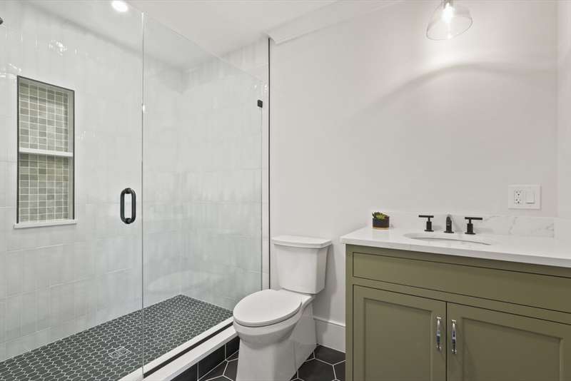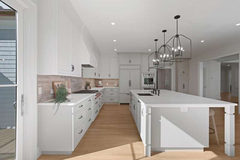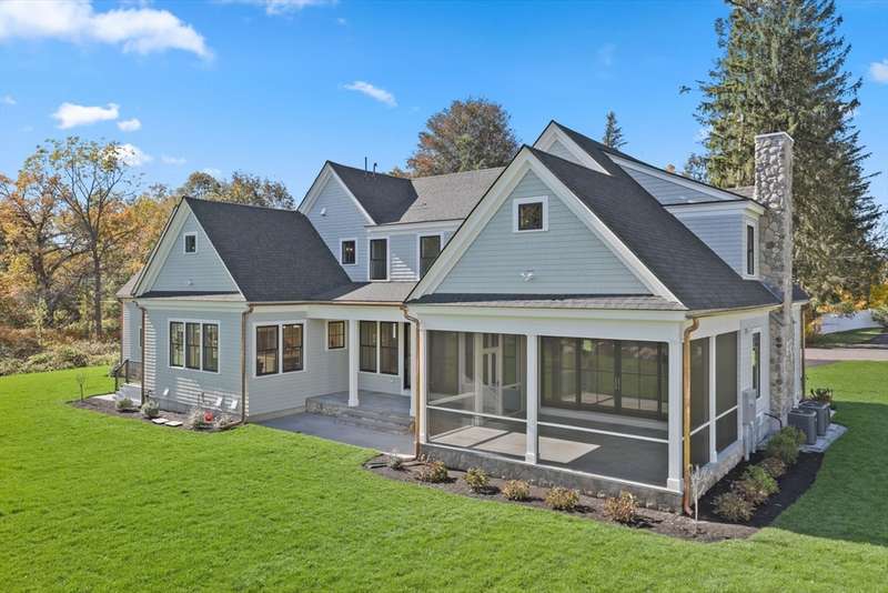 Quality craftsmanship and elegant design define this stunning 4-bedroom new construction home on highly sought-after Sunset Rock Road. The designer kitchen impresses with custom cabinetry, a 10-foot island, quartz countertops, top-of-the-line appliances, and a spacious dining area with access to the side porch. The first floor also offers a home office/flex room, a large family room with a gas fireplace, and sliders leading to a screened-in porch - perfect for enjoying fresh air year-round. A mudroom with half bath connects conveniently to the three-car attached garage. A custom staircase leads to the second floor, featuring two primary suites, each with walk-in closets and luxury baths, plus two additional bedrooms, two more full baths and a laundry room. Additional highlights include hardwood flooring throughout, Marvin windows, and a beautifully finished basement level with a half bath, wet bar, and spacious open layout ready for your personal touch!