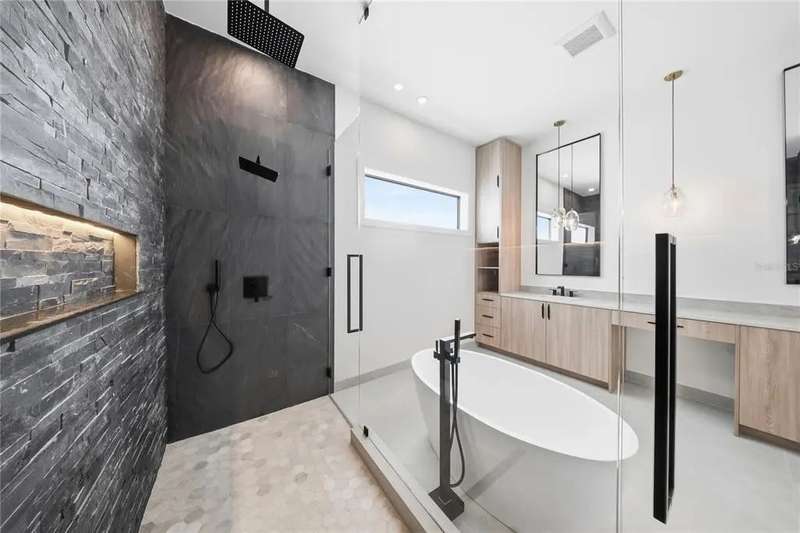 Under Construction. Sophisticated New Construction in Midtown This brand new 5-bedroom, 5.5-bath home spans 3,420 square feet of elevated living, expertly crafted with luxury finishes and thoughtful functionality throughout — and best of all, not located in a flood zone. Inside, smooth Level 4 walls and engineered oak hardwood floors create a refined, minimalist backdrop. The open-concept great room features a statement fireplace, flanked by designer sconces and bathed in natural light. The chef’s kitchen stuns with fluted black paneling on the island, custom white and black oak cabinetry, and striking pendant lighting — all seamlessly connected to the bar and pantry for effortless entertaining. Retreat upstairs to the second-floor primary suite, where spa-like serenity awaits with a freestanding tub, dual rain showerheads, a chandelier over the tub, and a white oak vanity layout accented by bold black plumbing fixtures. Every detail has been considered — from a stylish double laundry room to curated lighting throughout, including a modern stairwell chandelier, gold bathroom fixtures, and layered sconce lighting in the halls. The home also offers both balcony and patio access, blurring indoor-outdoor lines. Step outside to your own private oasis: a sleek pool and spa surrounded by lush landscaping and thoughtful outdoor lighting. Whether you're lounging with family or hosting guests, this home delivers on lifestyle and luxury. Current listing pictures are of 3406 Arch St, this home will have the same level of finishes with a different color pallet.