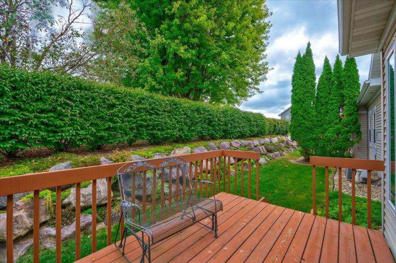 Dream condo! First time on-market! Condo w/ Private Entry and Main Level living on end of quiet, residential cul du sac. Sunroom/office area off of primary bedroom. Serene, private deck off the back of the unit that faces private green-space & perennial rock bed. Gas fireplace and large open living & dining area off kitchen. Main level laundry! 2. 5 baths! Finished Lower level w/ optional 3rd bedroom (non-conforming) rec room & wood shop. One-car attached garage. Perfectly maintained. Original owner. Go and Show! Water softener owned. Original appliances except refrigerator replaced 2017. Furnace 2000.
